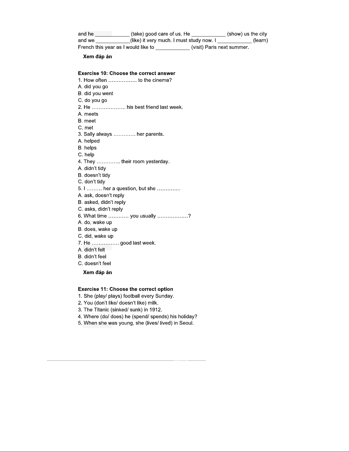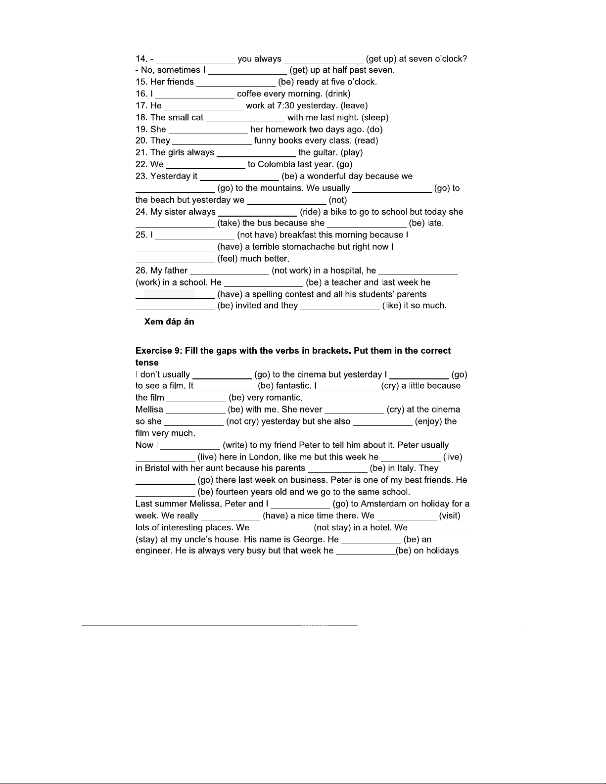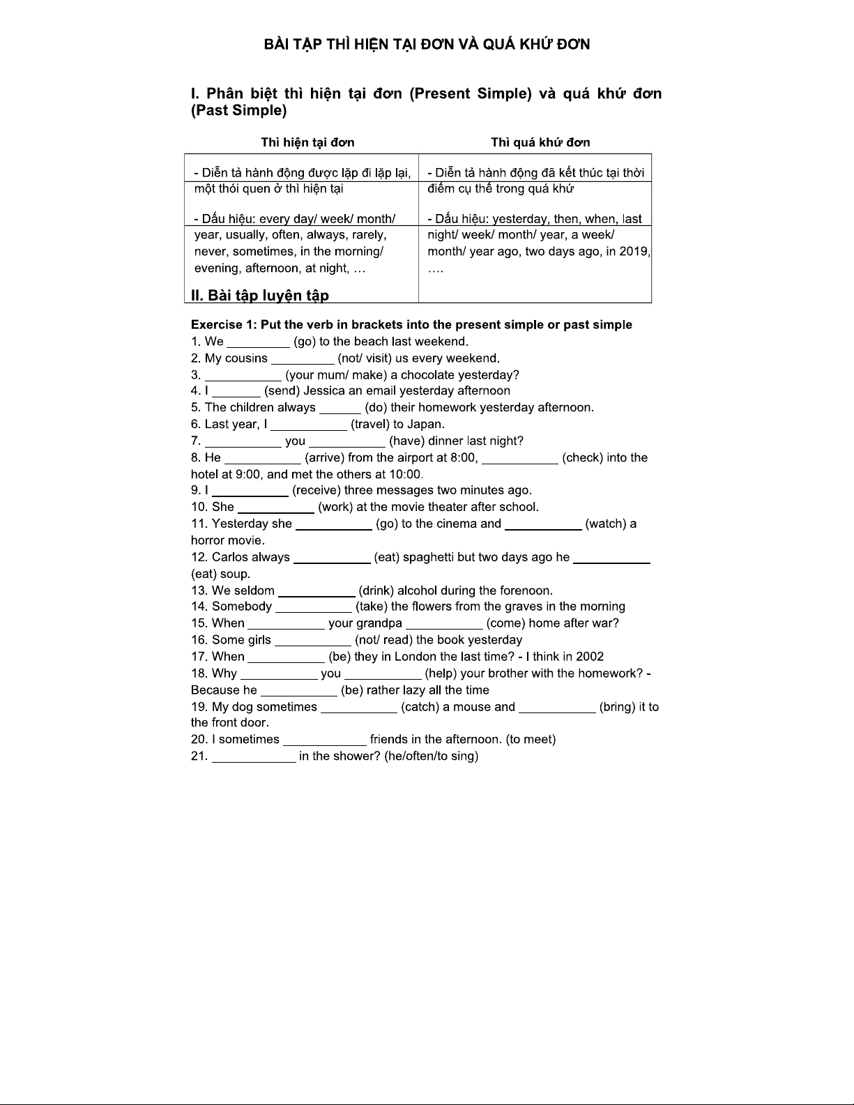 BÀI TẬP VỀ THÌ HIỆN TẠI ĐƠN VÀ QUÁ KHỨ ĐƠN - TIẾNG ANH 101