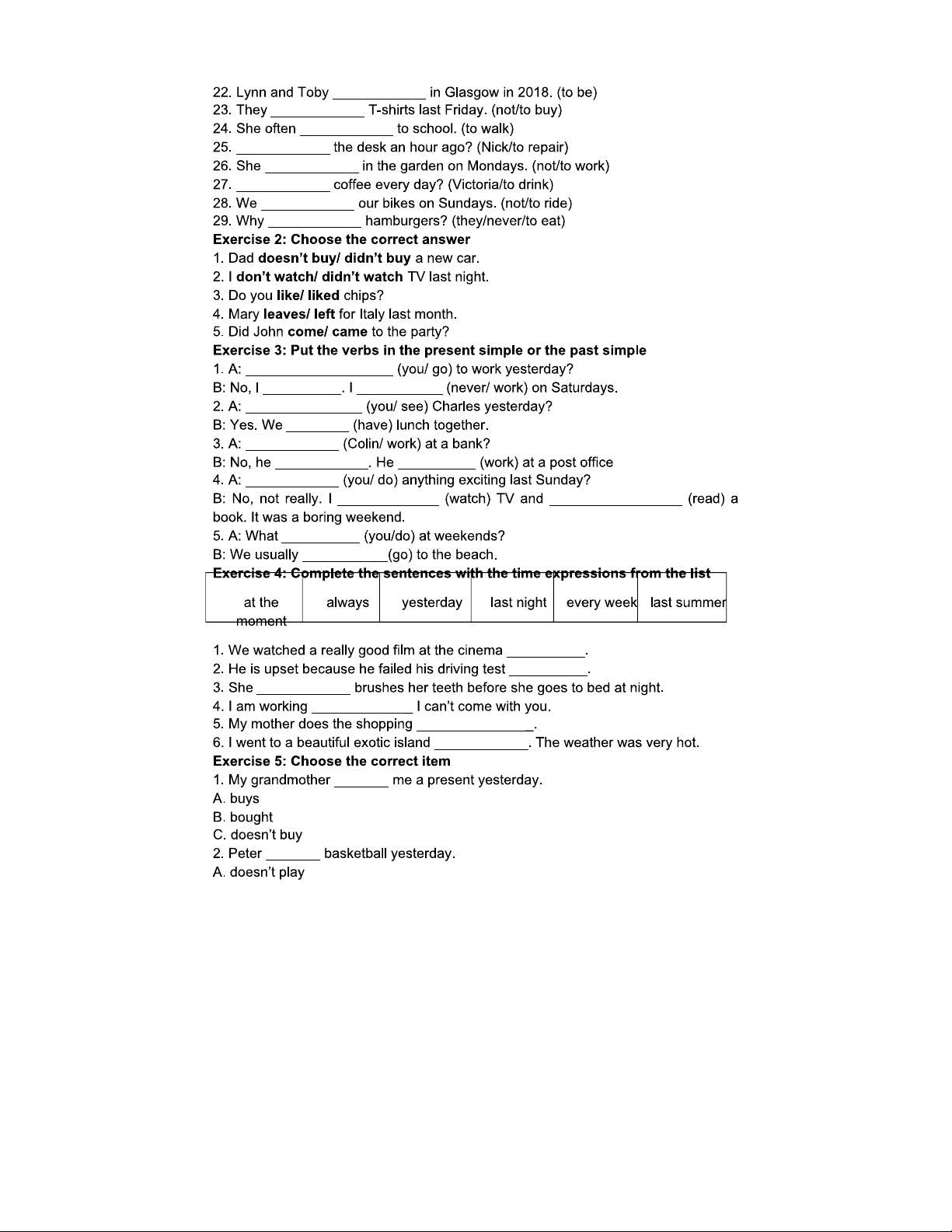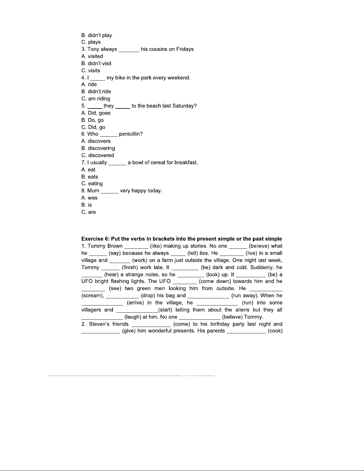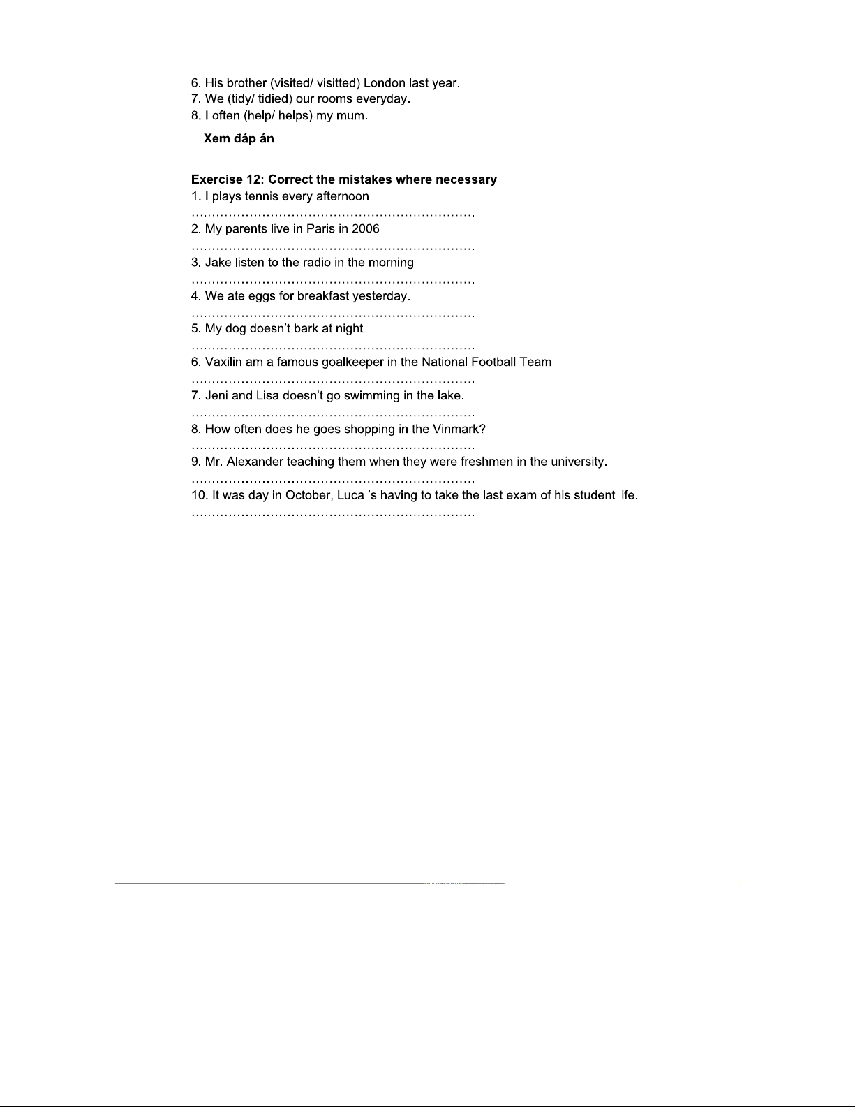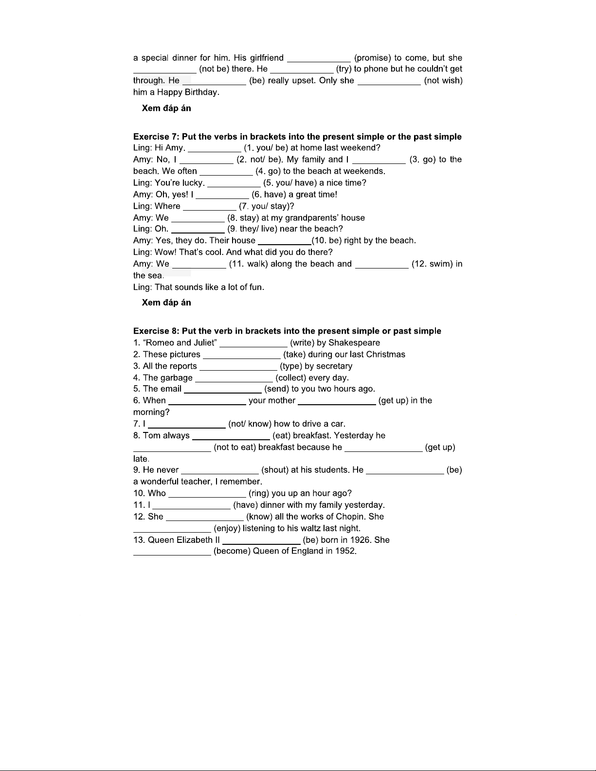 BÀI TẬP VỀ THÌ HIỆN TẠI ĐƠN VÀ QUÁ KHỨ ĐƠN - TIẾNG ANH 101