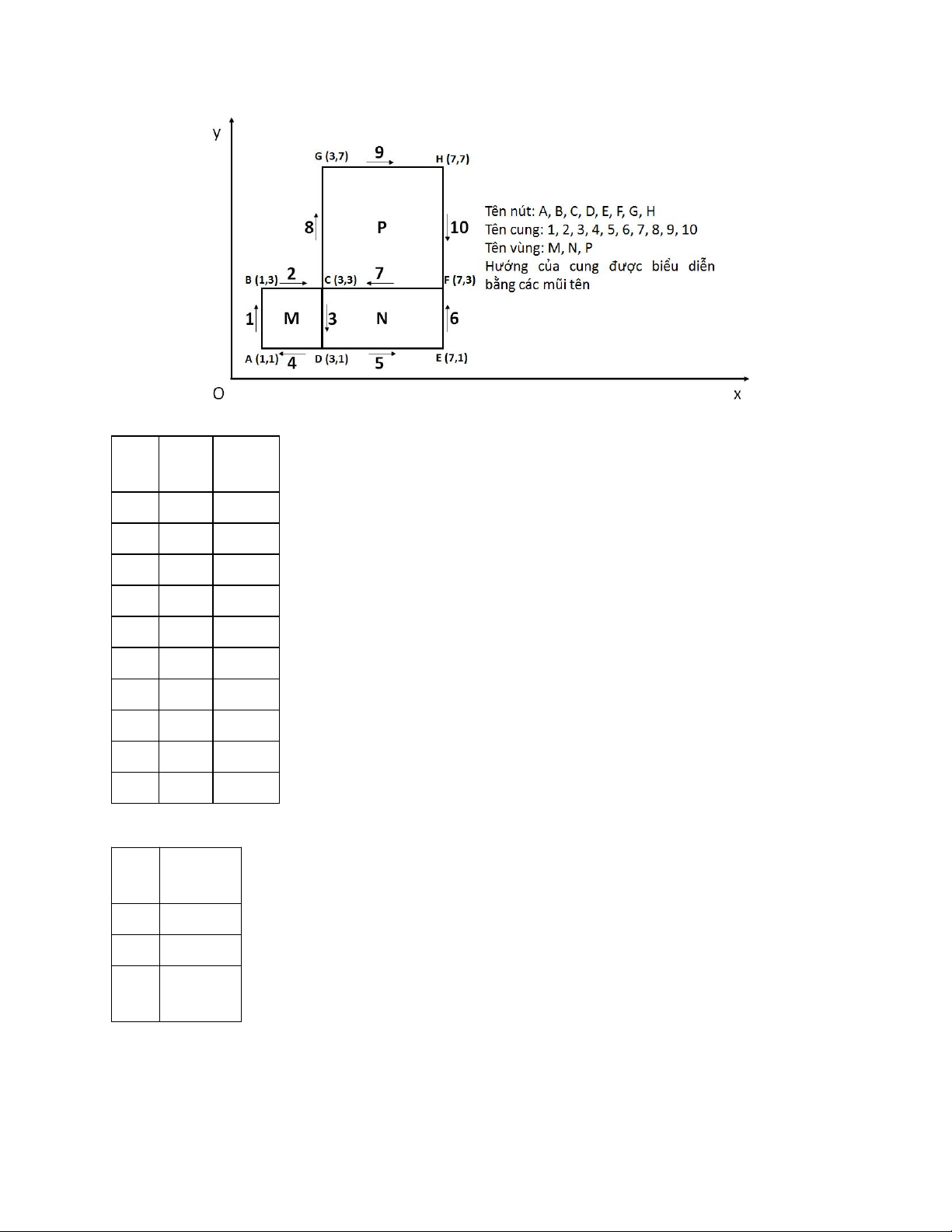 - Mối quan hệ topology cung - nút: Cung Nút đi Nút đến 1 A B 2 B C 3 C D 4 D A 5 D E 6 E F 7 F C 8 C G 9 G H 10 H F