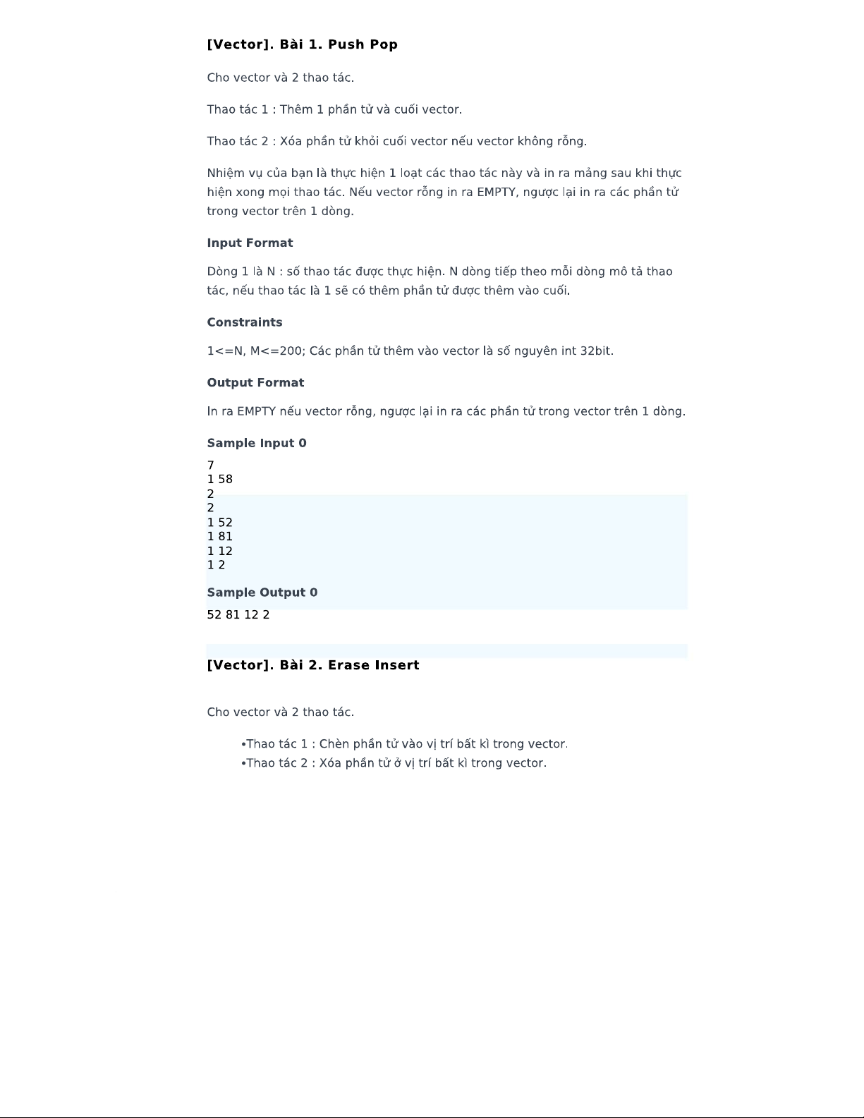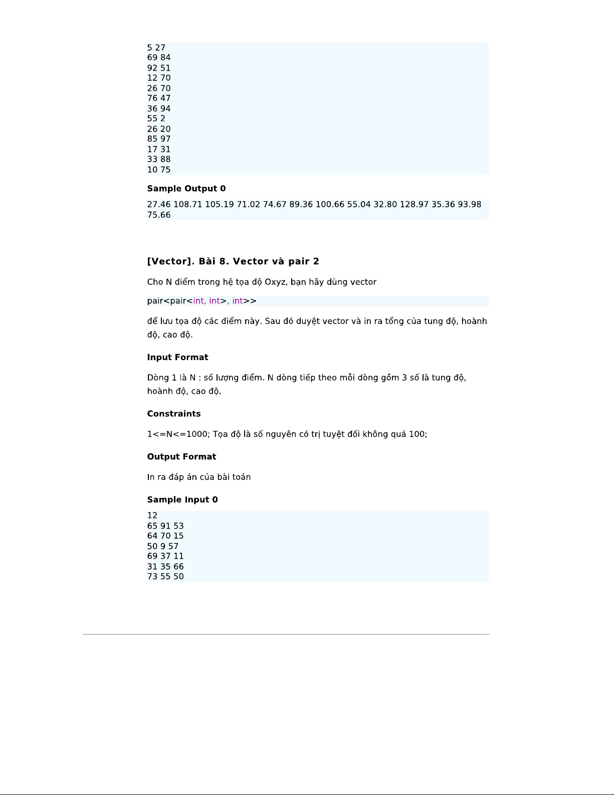 Bài tập về Vector và Pair - CS101