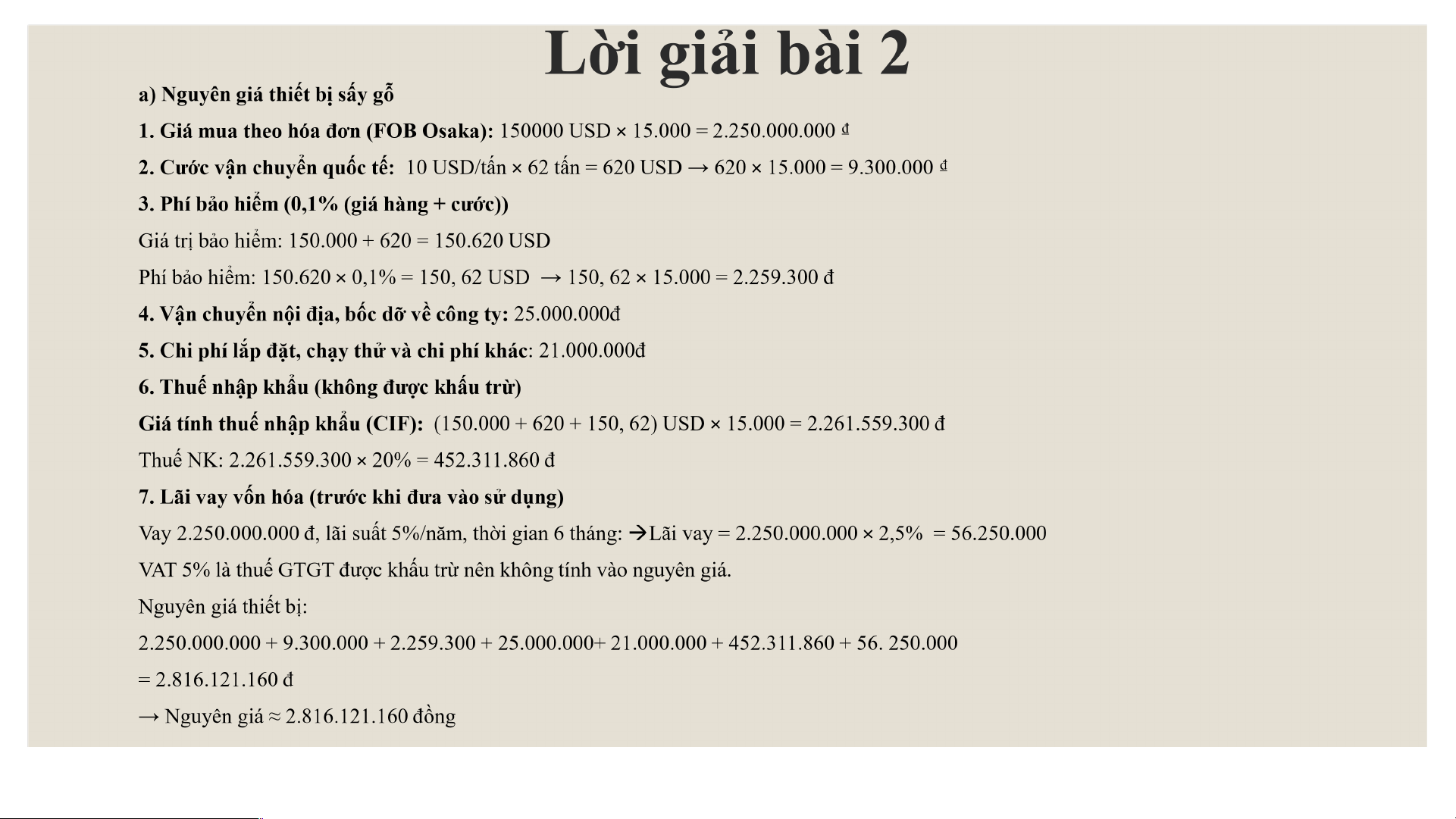 Xác định nguyên giá của thiết bị sấy gỗ nhập khẩu? b.