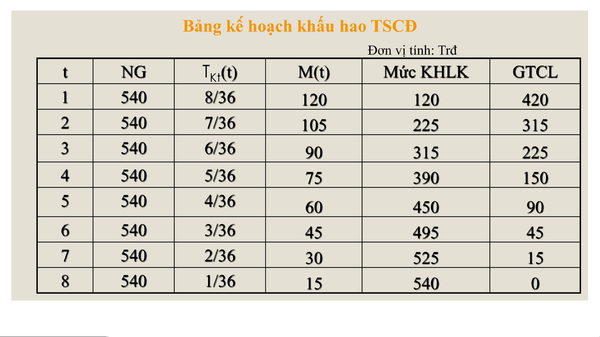 8năm - t = 1TKt(1) = 8/36M(1) = NG x TKt(1)