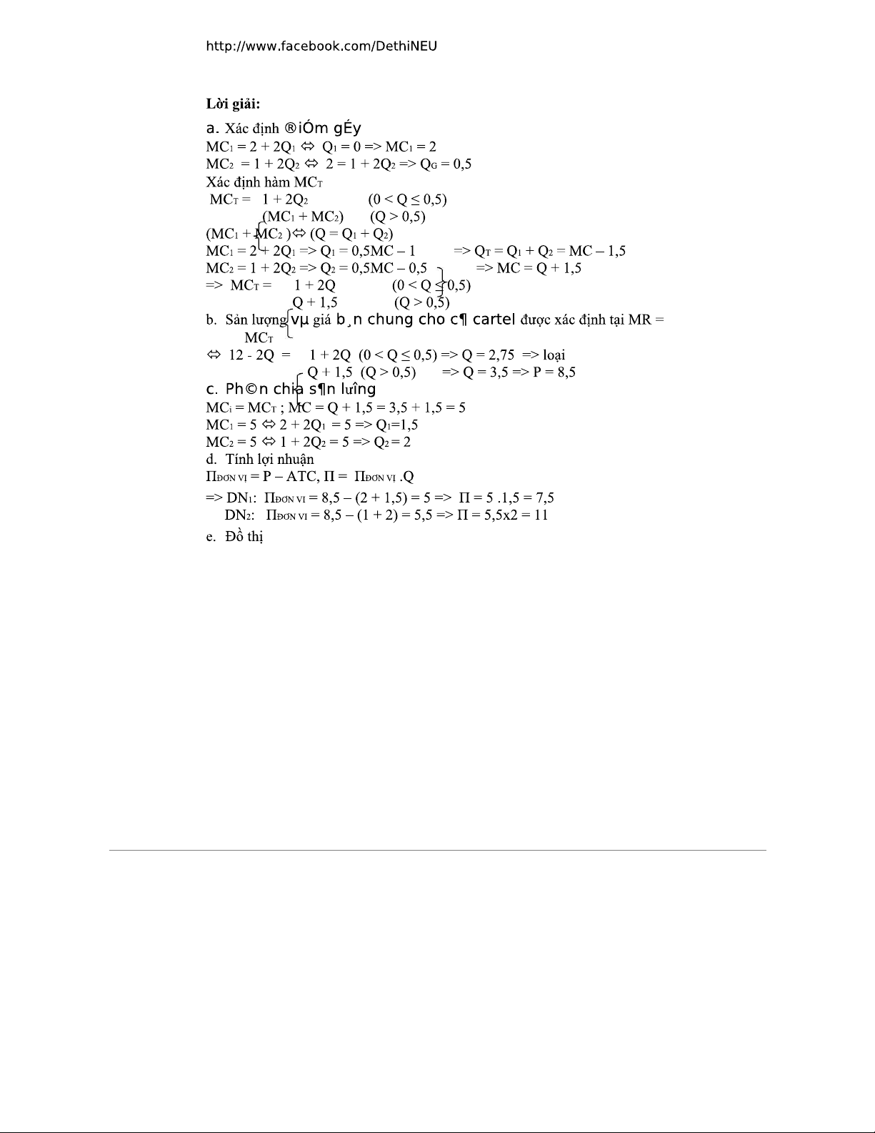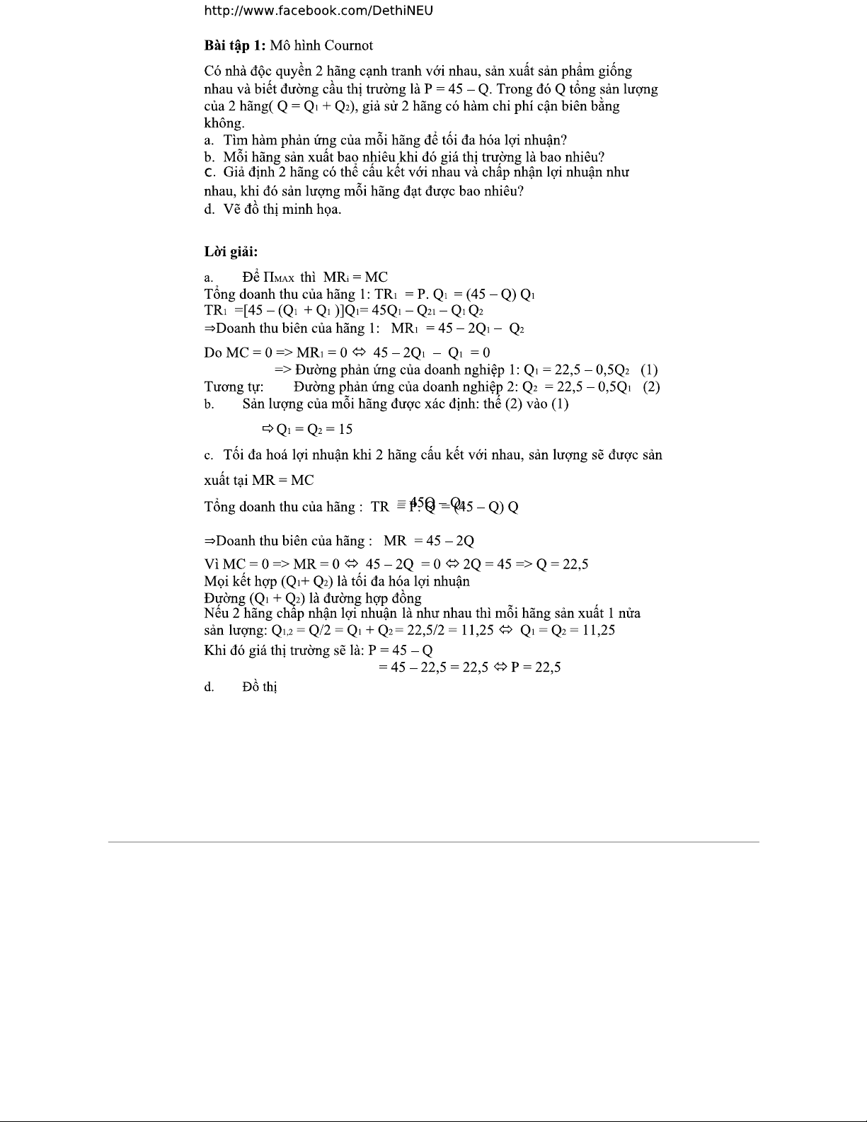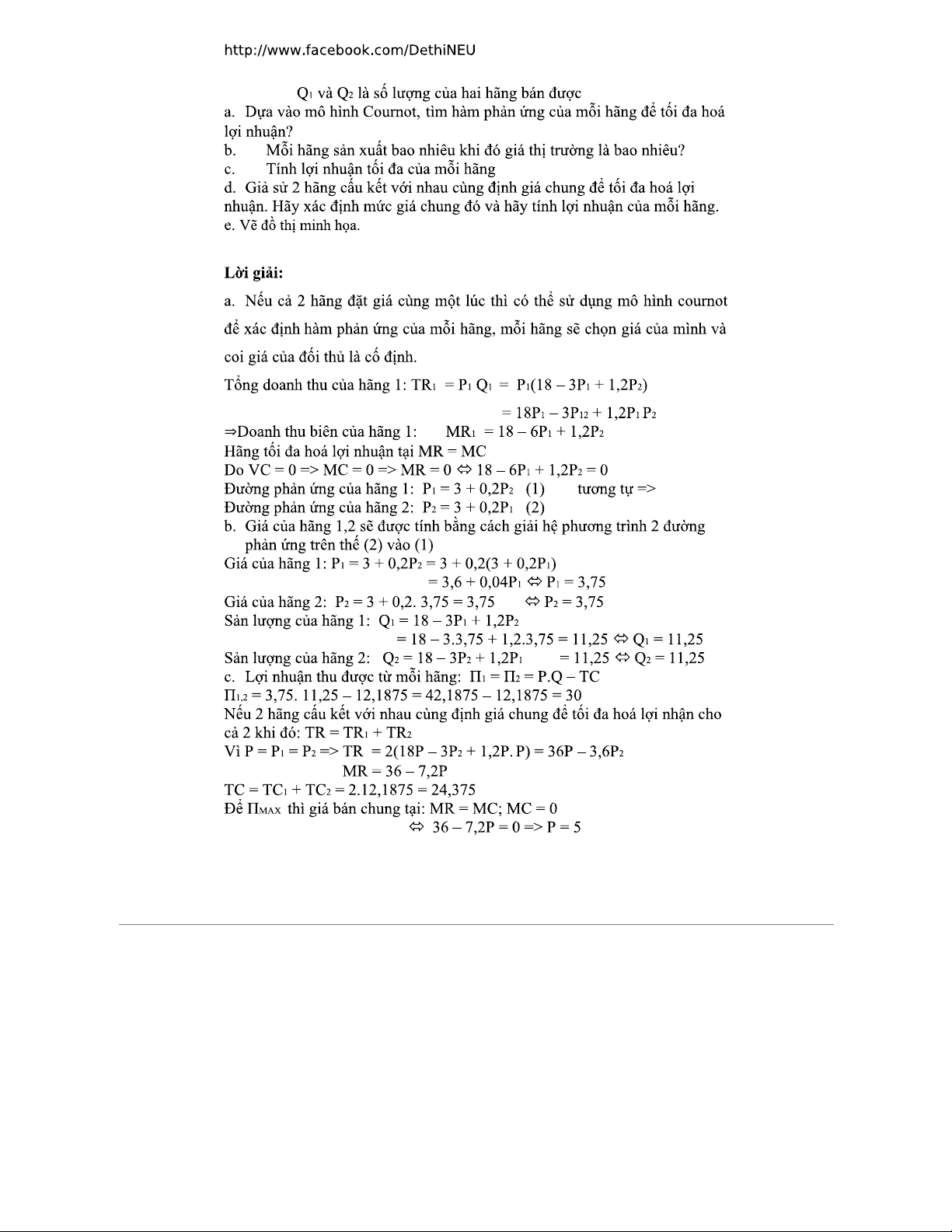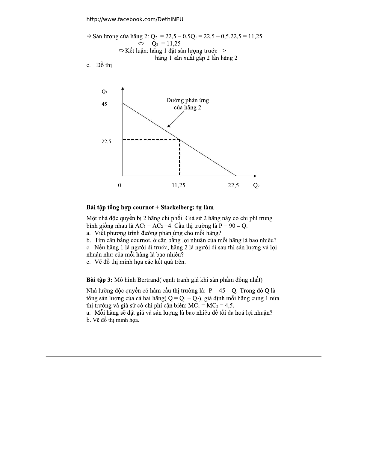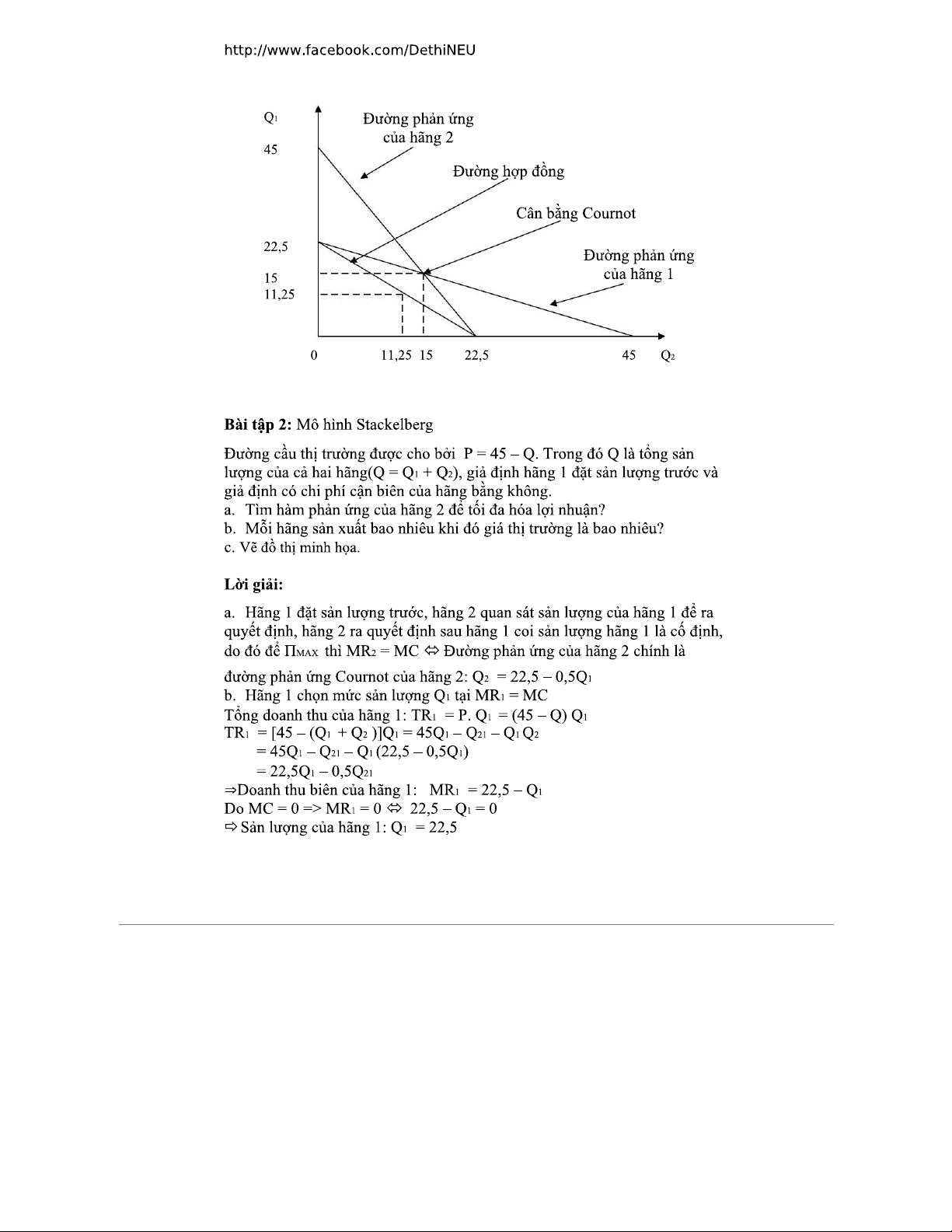Bài tập vi mô 2: Lời giải mô hình Cournot và Stackelberg