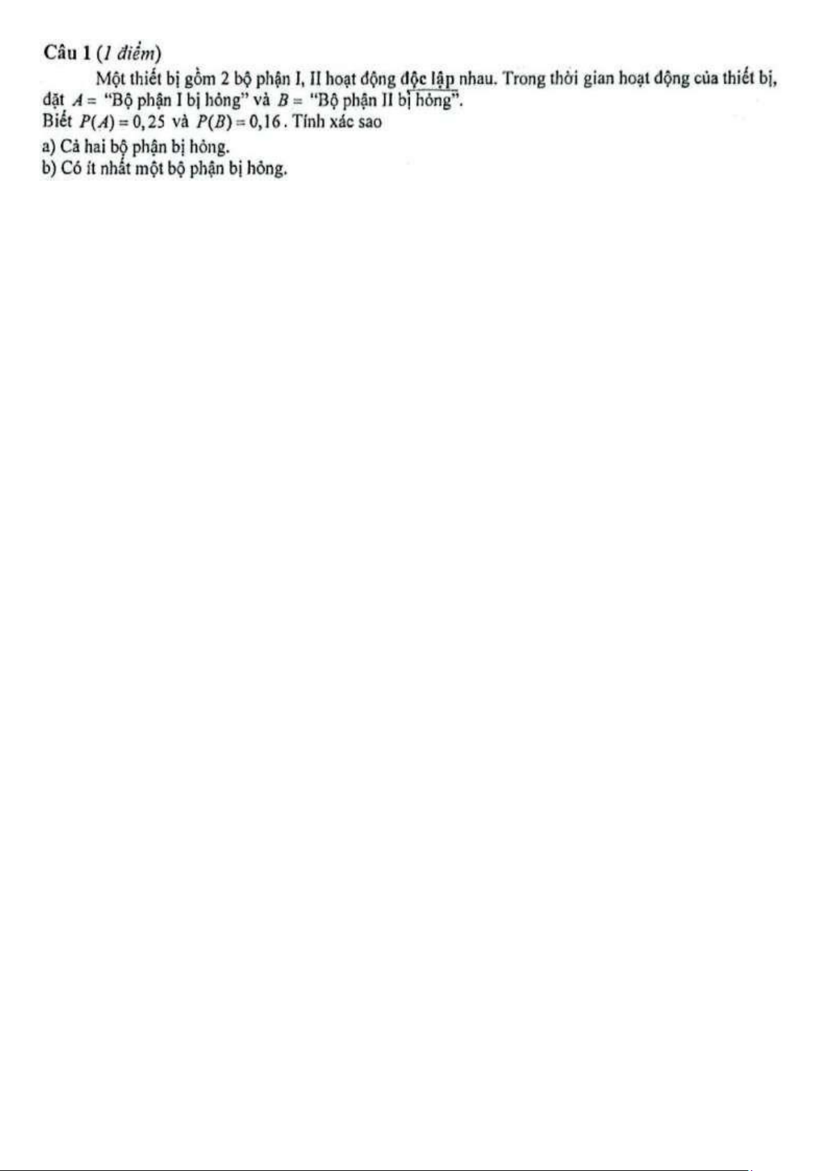 Bài tập chương 1 - Xác suất thống kê | Trường Đại học Kinh tế, Đại học Quốc gia Hà Nội