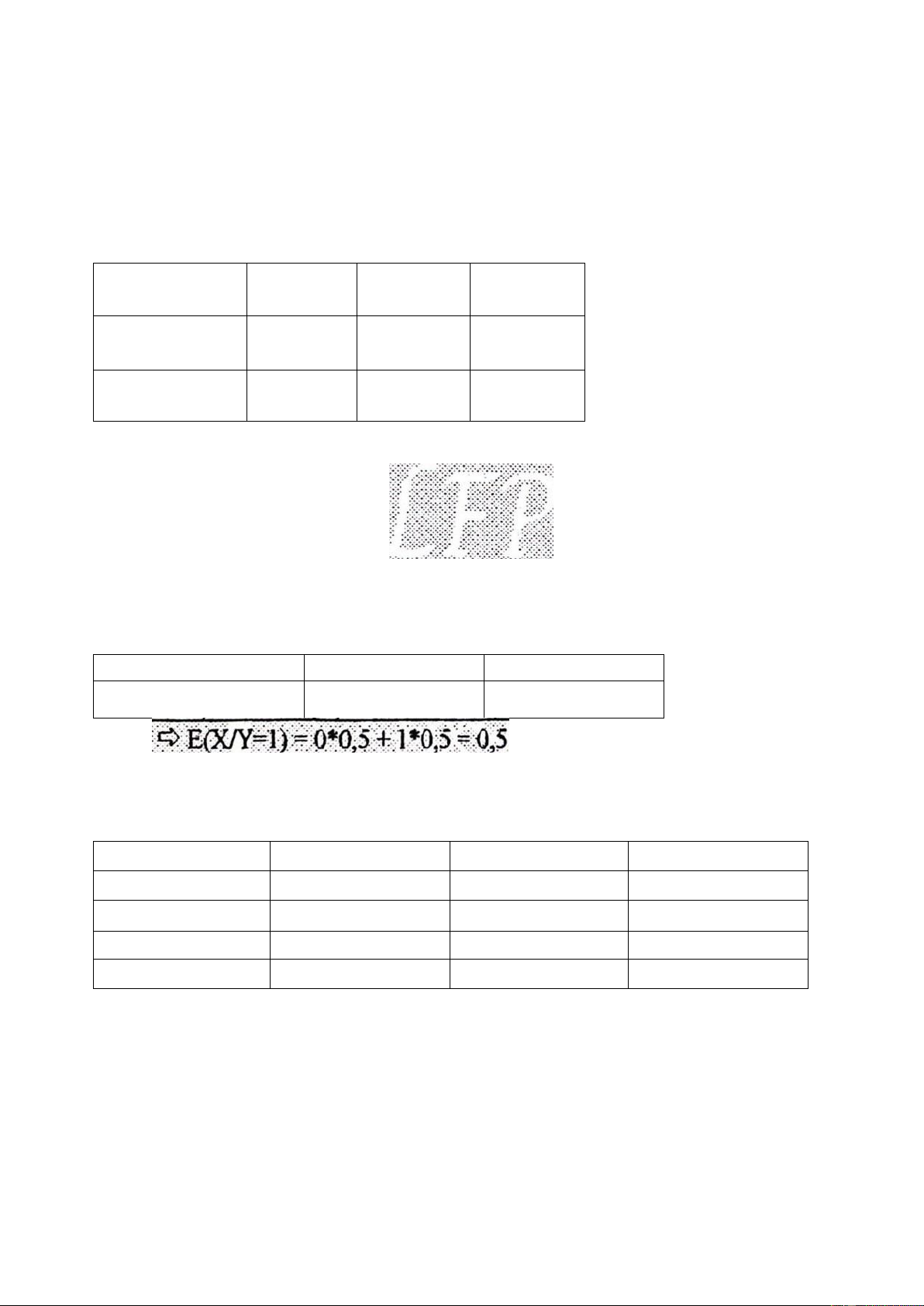 Câu 22.Cho bàng phân phối xác suất của biến ngẫu nhiên 2 chiều (X;Y)nhu sau: 6 Y 1 2 3 X 0 0,2 a 0.05 1 b 0.15 0,1 Tinh P(Y=2), biết EE(Y)=17 5. A.0,3 C.0,4 B.0,15 D.0,45 Giải : Ta có hê ptr a+b=0.5{1+(0.2+b) +2⋅(a+0.15)+3⋅0.15=1.752