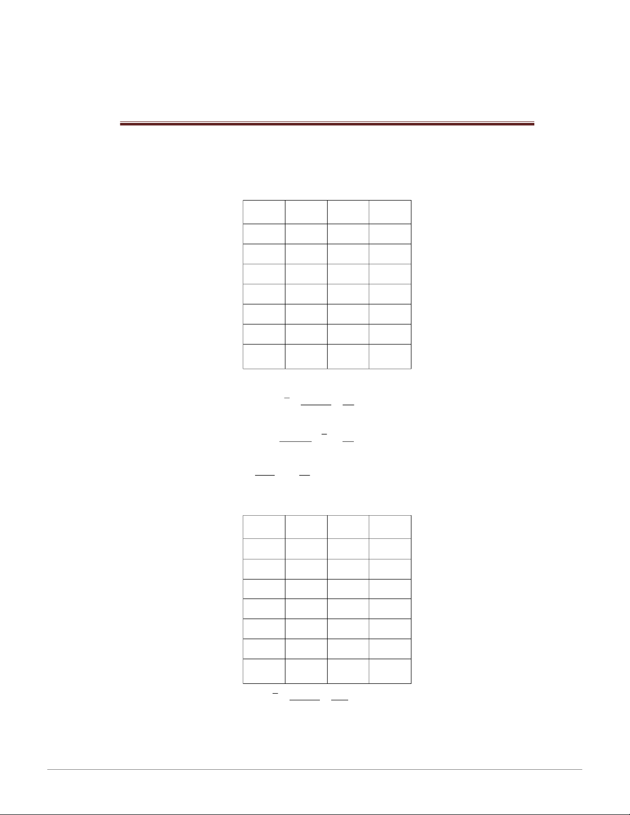 Bài 2. Bảng phân phối tần số thực nghiệm là x 3 4 5 6 i n 1 1 3 3 i Ta có bảng sau x n x 2 n x i n i i i i i 3 1 3 9 4 1 4 16 5 3 15 75 6 3 18 108 8 40 208 ni ix 40 x 5 n 8 22 n x 208 i i 2 ms x 5 1 n 8 2n 8 s