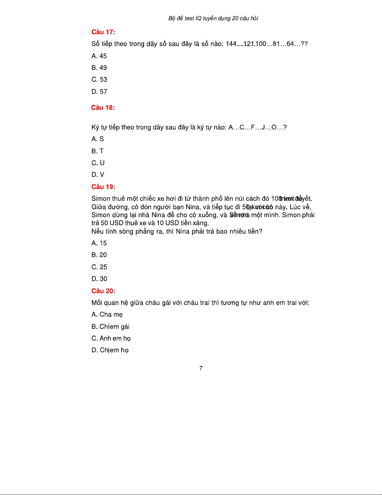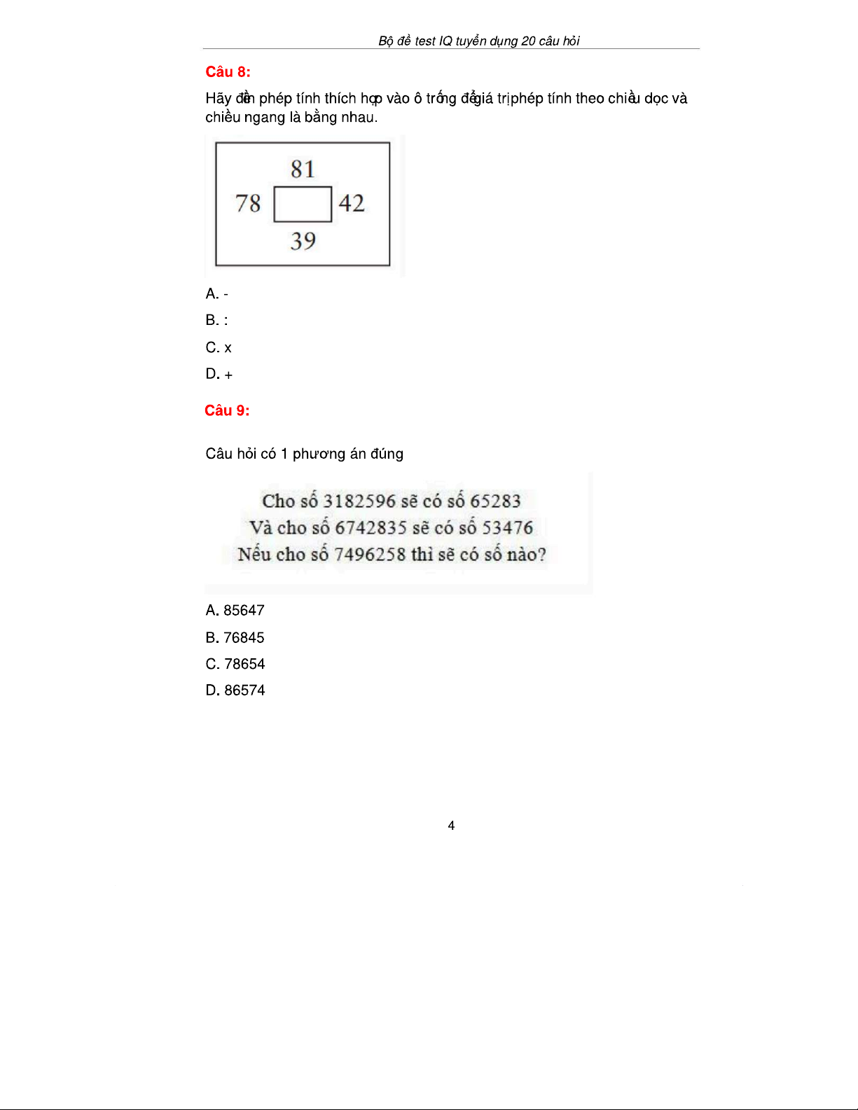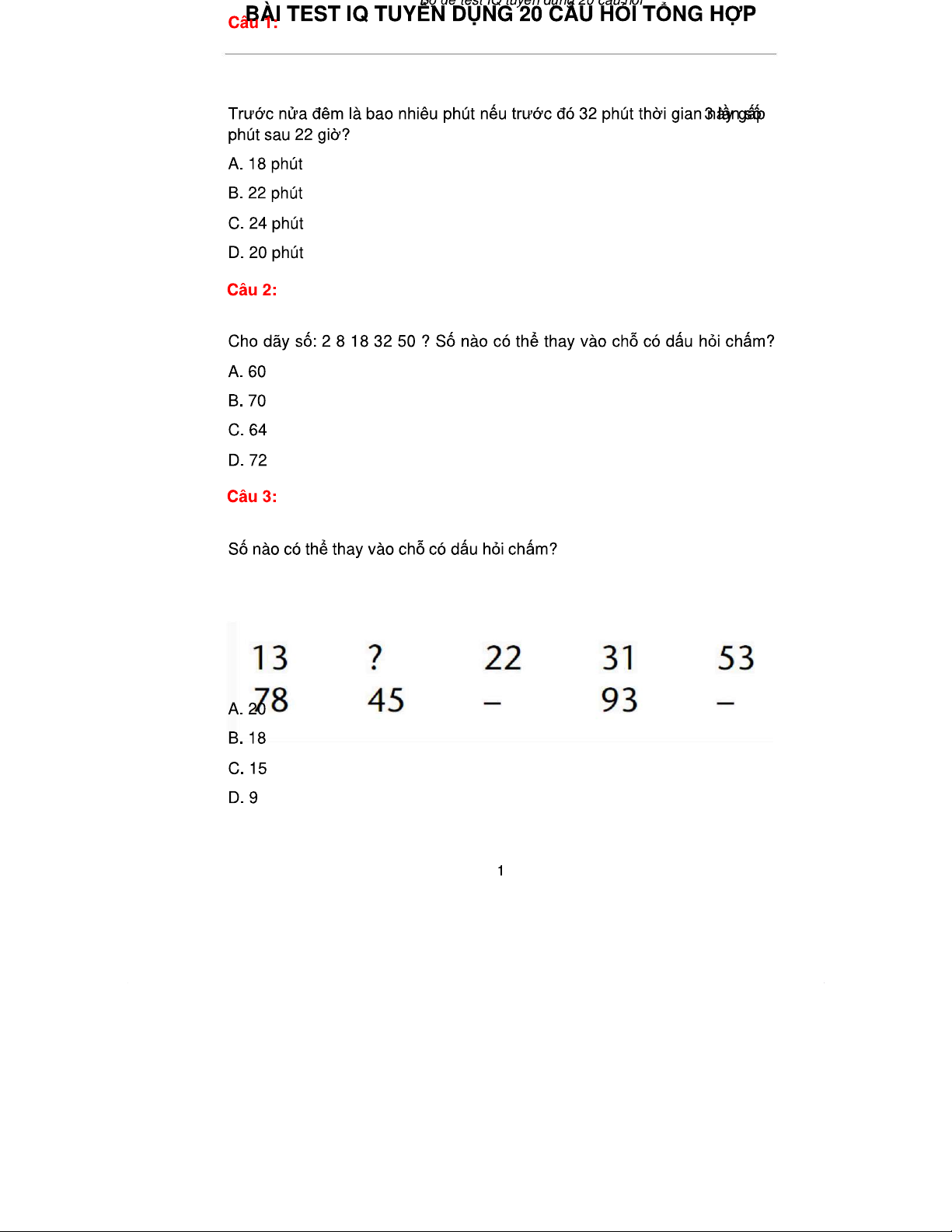 Bài Test IQ Tuyển Dụng 20 Câu Hỏi & Đáp Án - 20Cau-Co Dap An