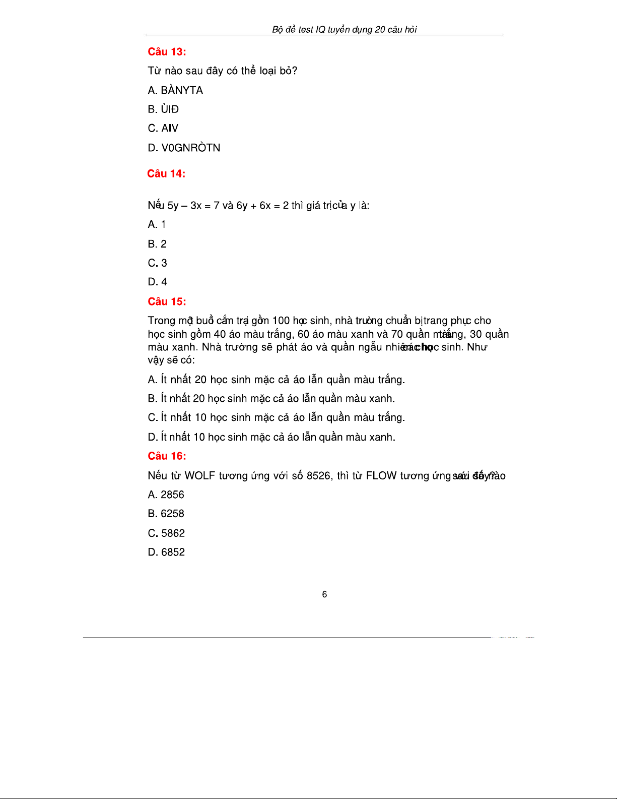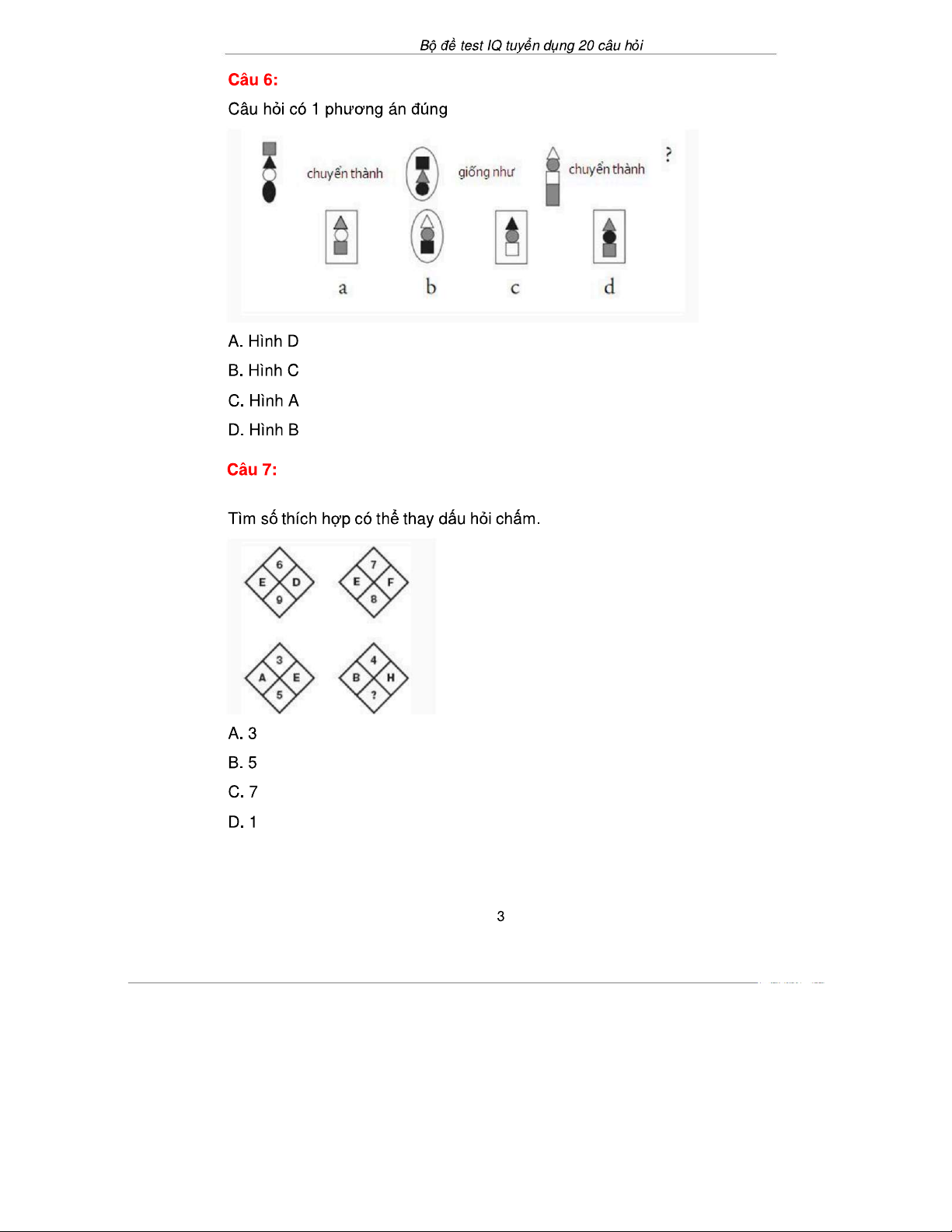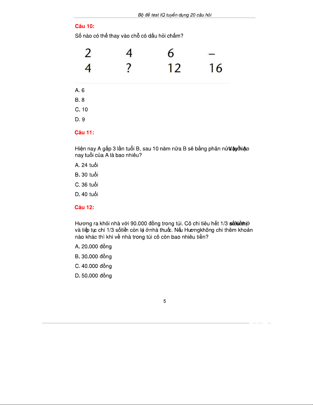 Bài Test IQ Tuyển Dụng 20 Câu Hỏi & Đáp Án - 20Cau-Co Dap An