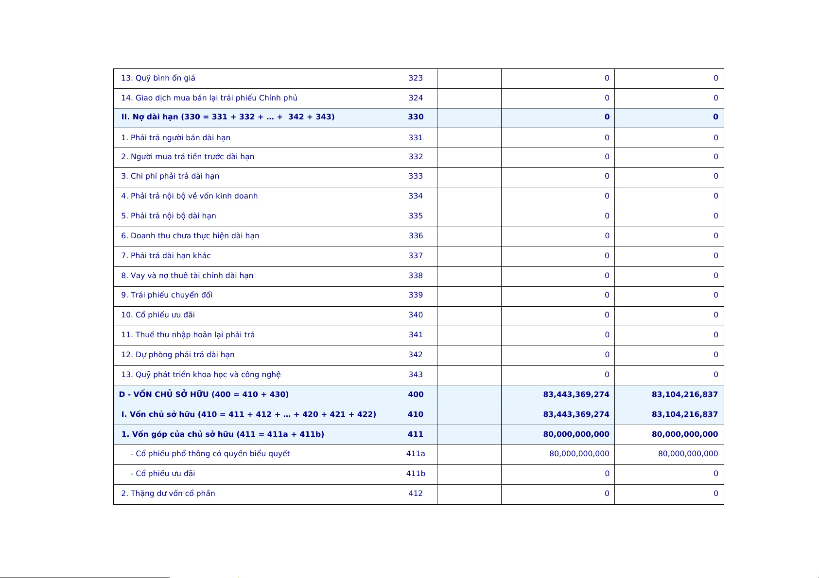 D - VỐN CHỦ SỞ HỮU (400 = 410 + 430) 400 83,443,369,274 83,104,216,837