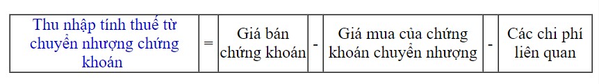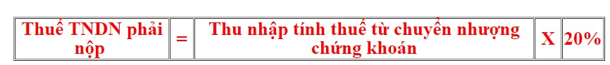 Thuế thu nhập cá nhân phải nộp = Giá chuyển nhượng chứng khoán từng lần x Thuế suất 0,1%
