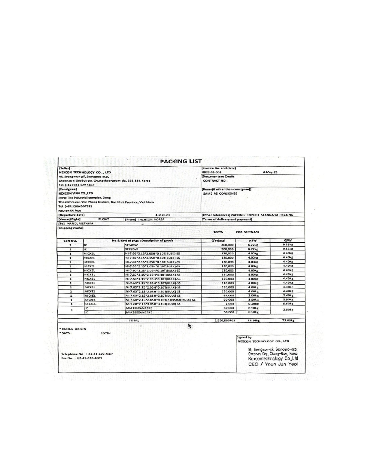 - Bên xuất khẩu : Nexcon technology co ., ltd