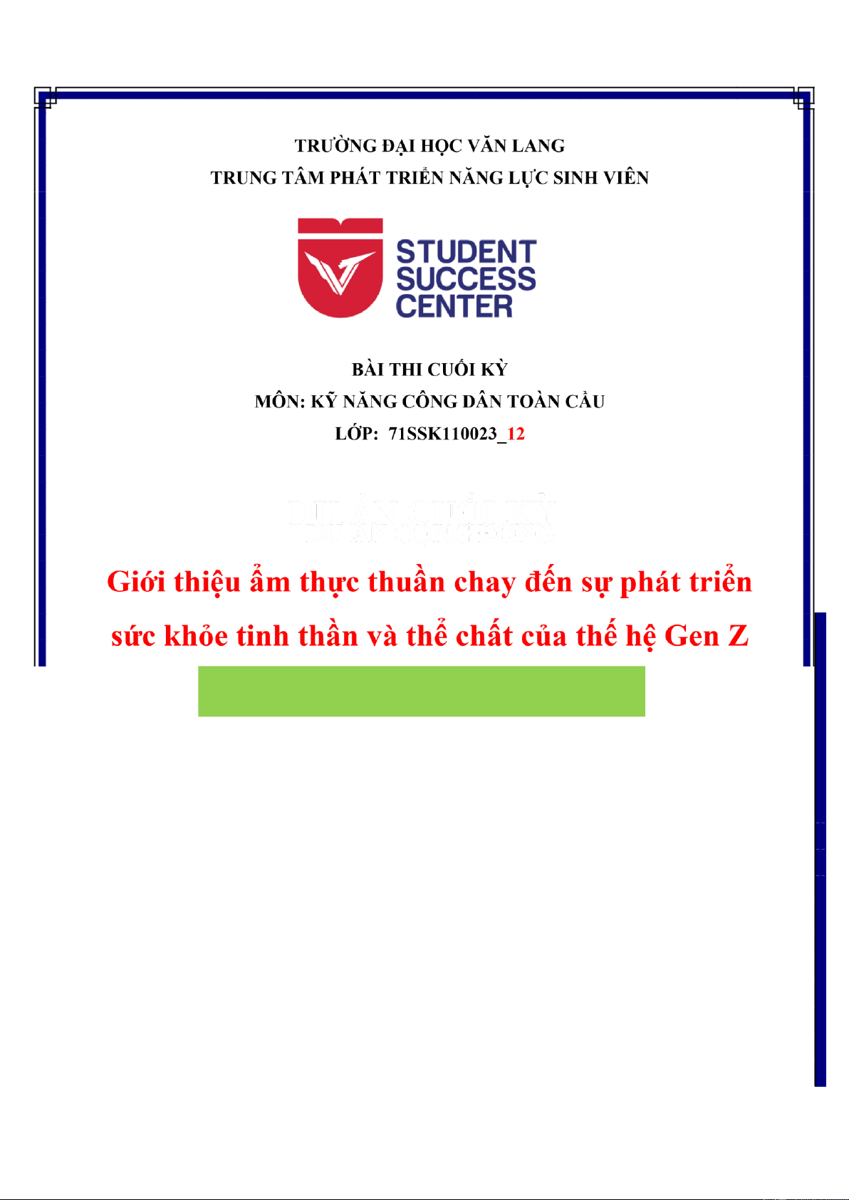 sức khỏe tinh thần và thể chất của thế hệ Gen Z. Đề tài tập trung vào việc phân tích