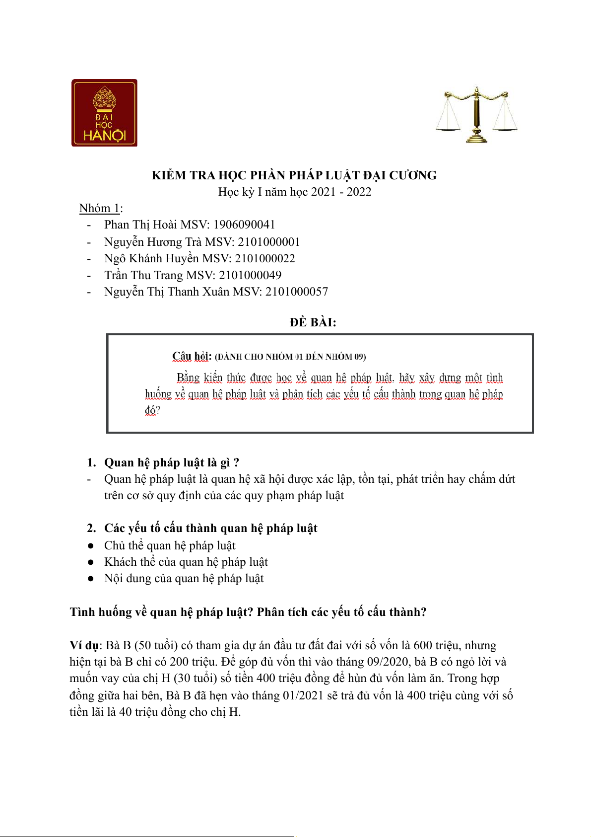 - Quan hệ pháp luật quan hệ hội được xác lập, tồn tại, phát triển hay chấm dứt
