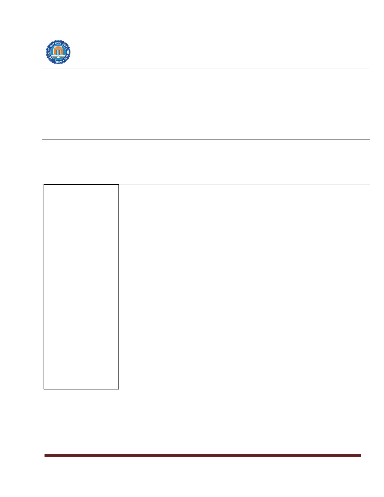 Họ và tên: Trần Yến Nhi Điểm kết luận: GV chấm thi 1: GV chấm thi 2: SV/HV không được viết vào cột này) Điểm từng câu, diểm thưởng (nếu có) và điểm toàn bài GV chấm 1: Câu 1: ……… điểm Câu 2: ……… điểm …………………. …………………. Cộng điểm GV chấm 2: