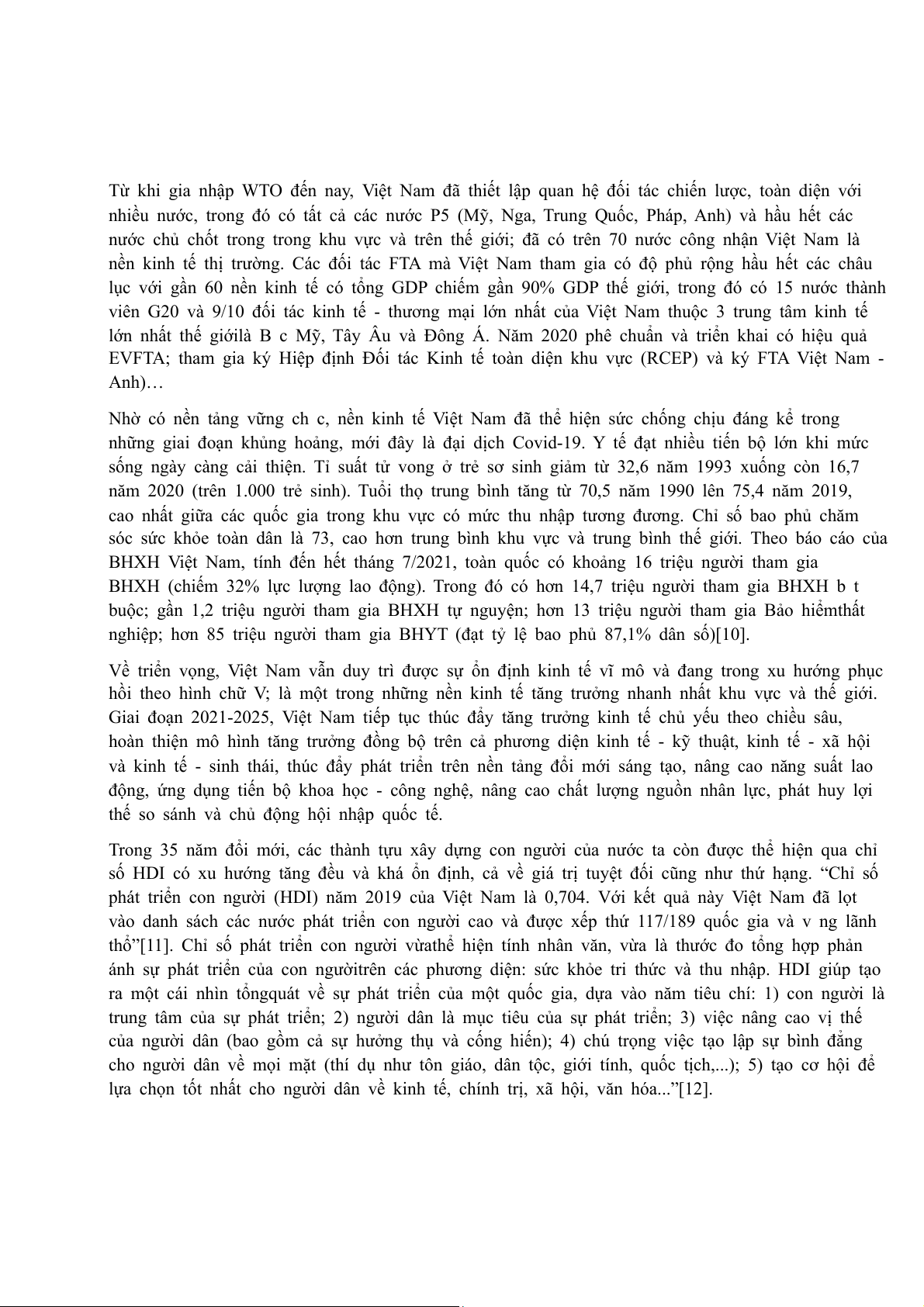 phát triển con người (HDI) năm 2019 của Việt Nam là 0,704. Với kết quả này Việt Nam đã lọt