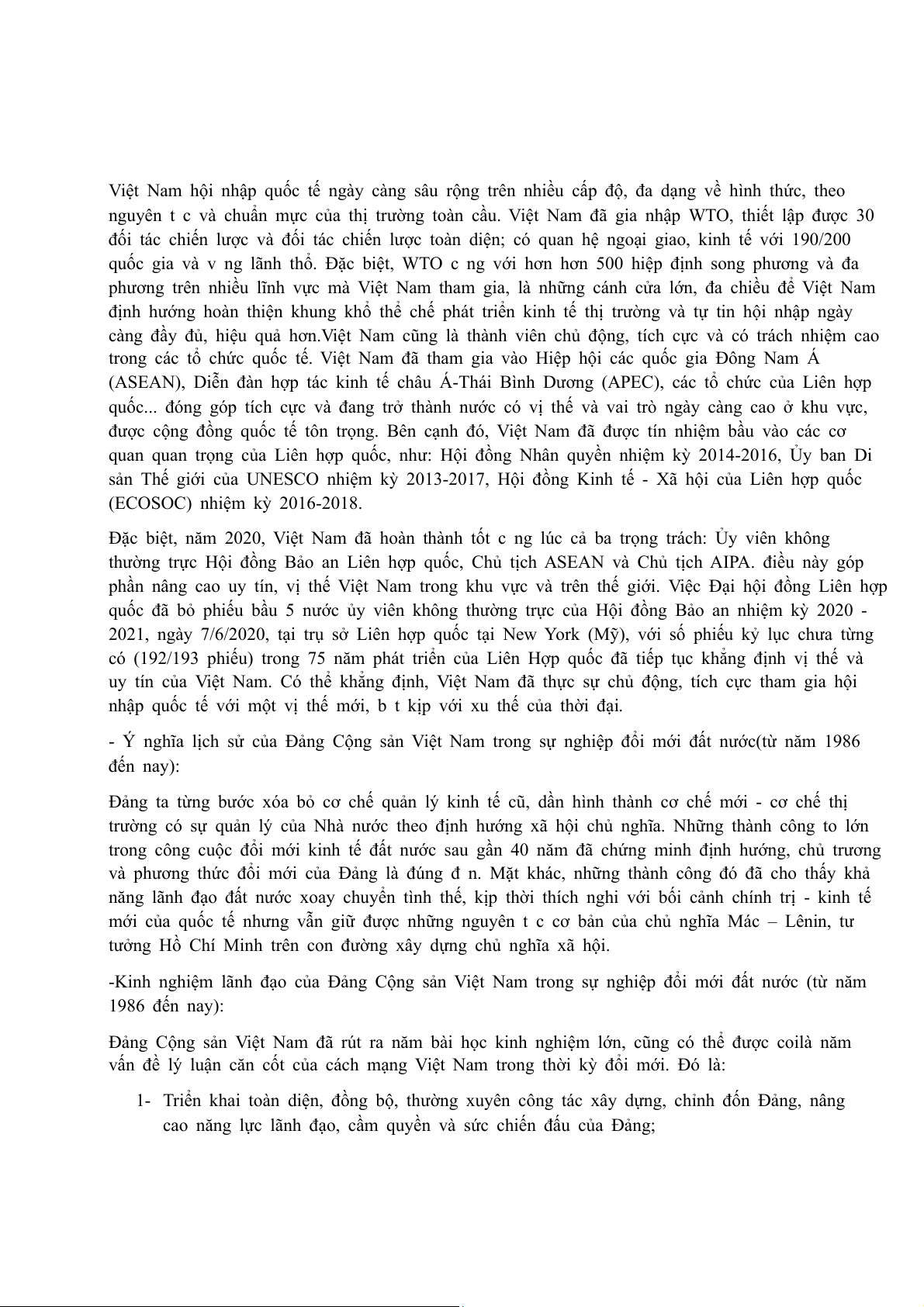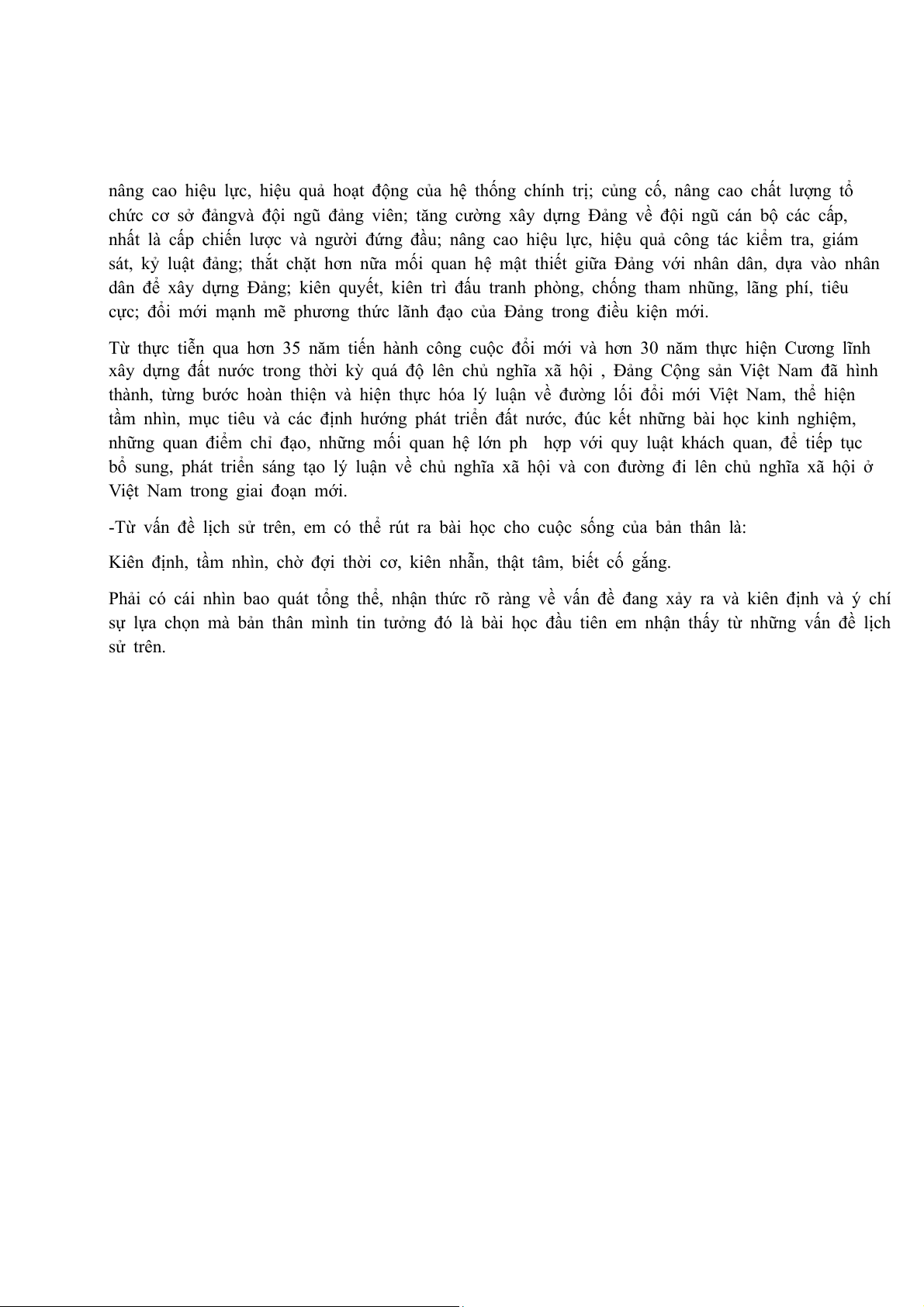 -Kinh nghiệm lãnh đạo của Đảng Cộng sản Việt Nam trong sự nghiệp đổi mới đất nước (từ năm 1986 đến nay):