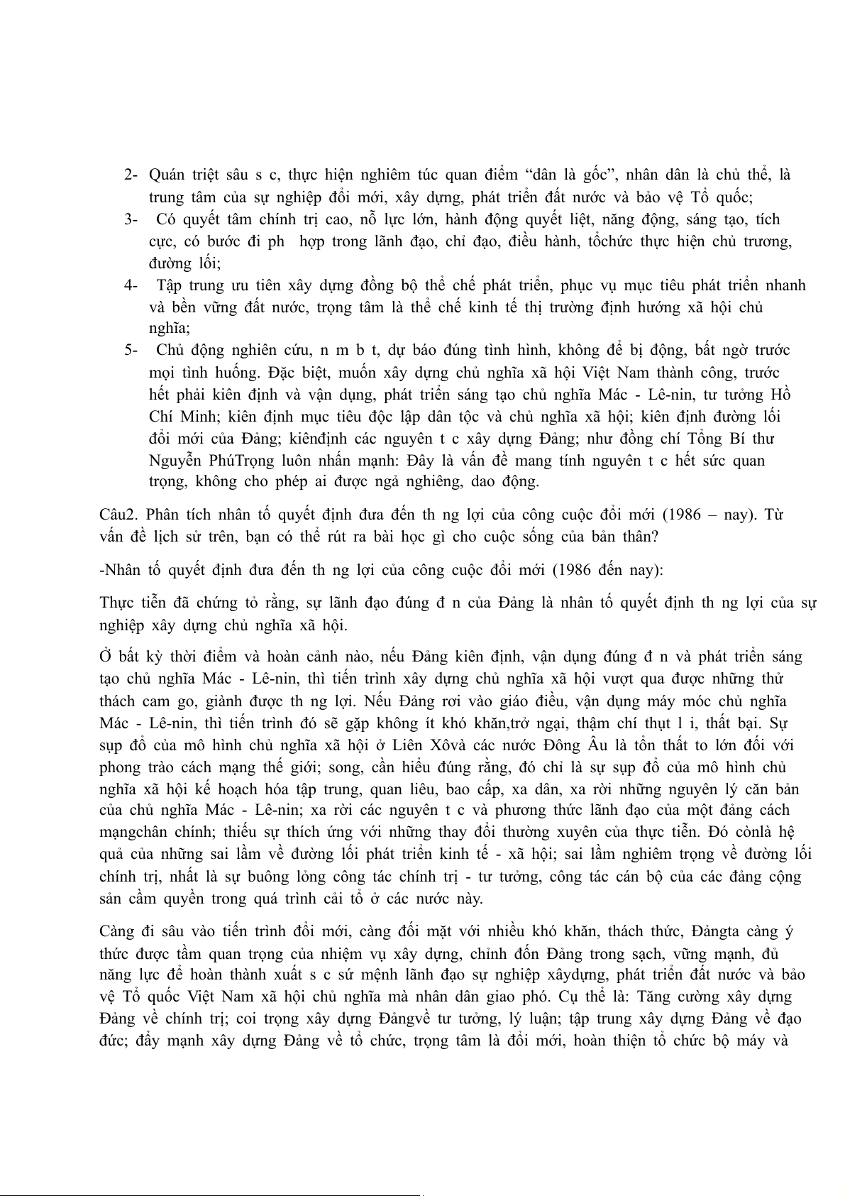 Câu 2. Phân tích nhân tố quyết định đưa đến th ng lợi của công cuộc đổi mới (1986 – nay). Từ
