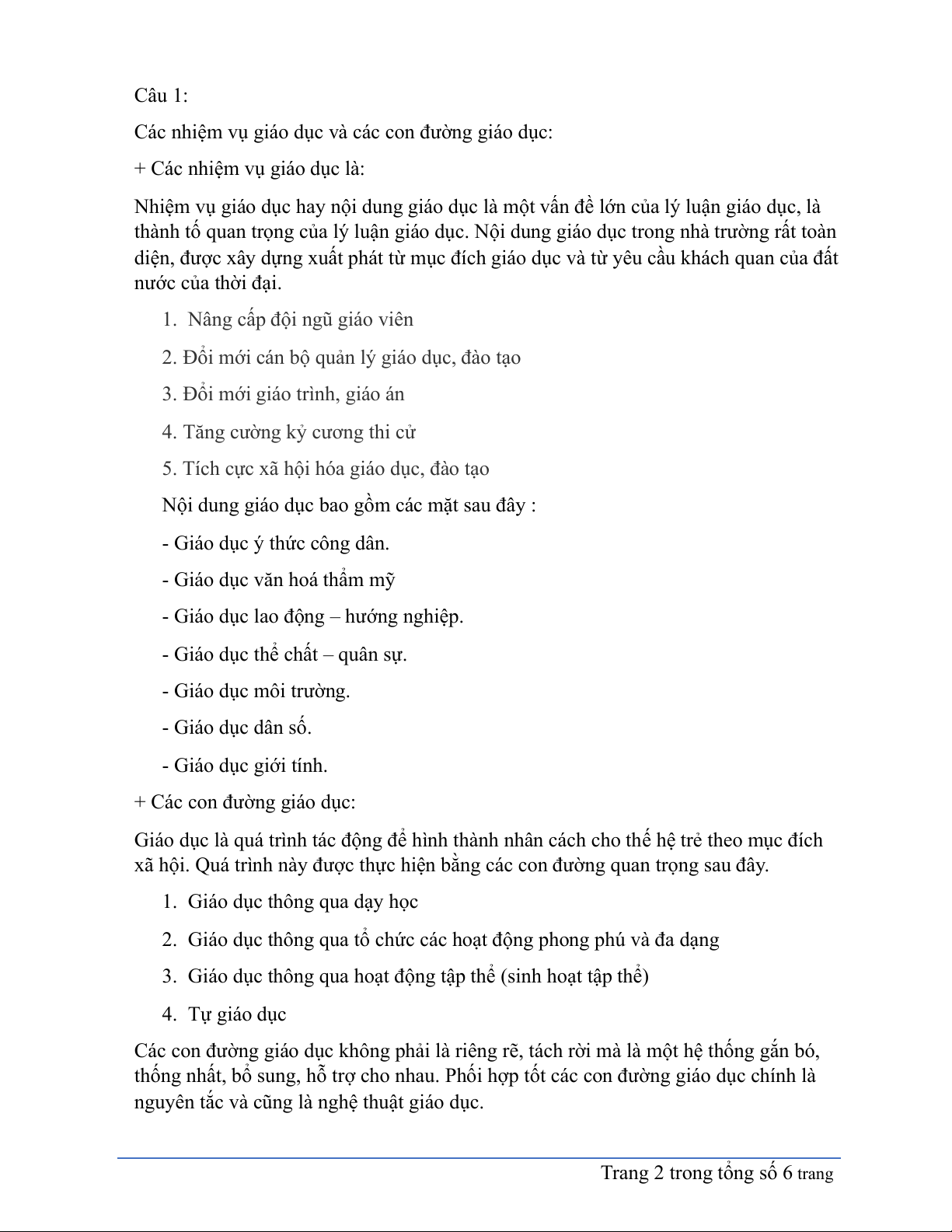 i o dục và các con đường giáo dục : + Các nhiệm vụ g á i o dục là :