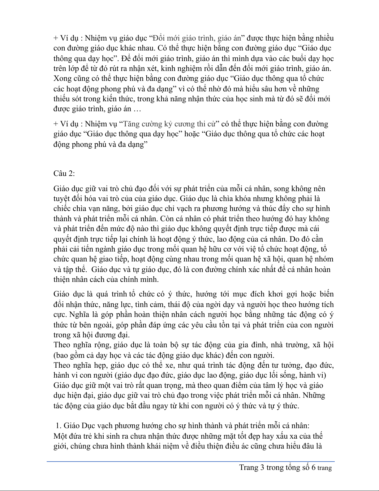 1. Giáo Dục vạch phương hướng cho sự hình thành và phát triển mỗi cá nhân: