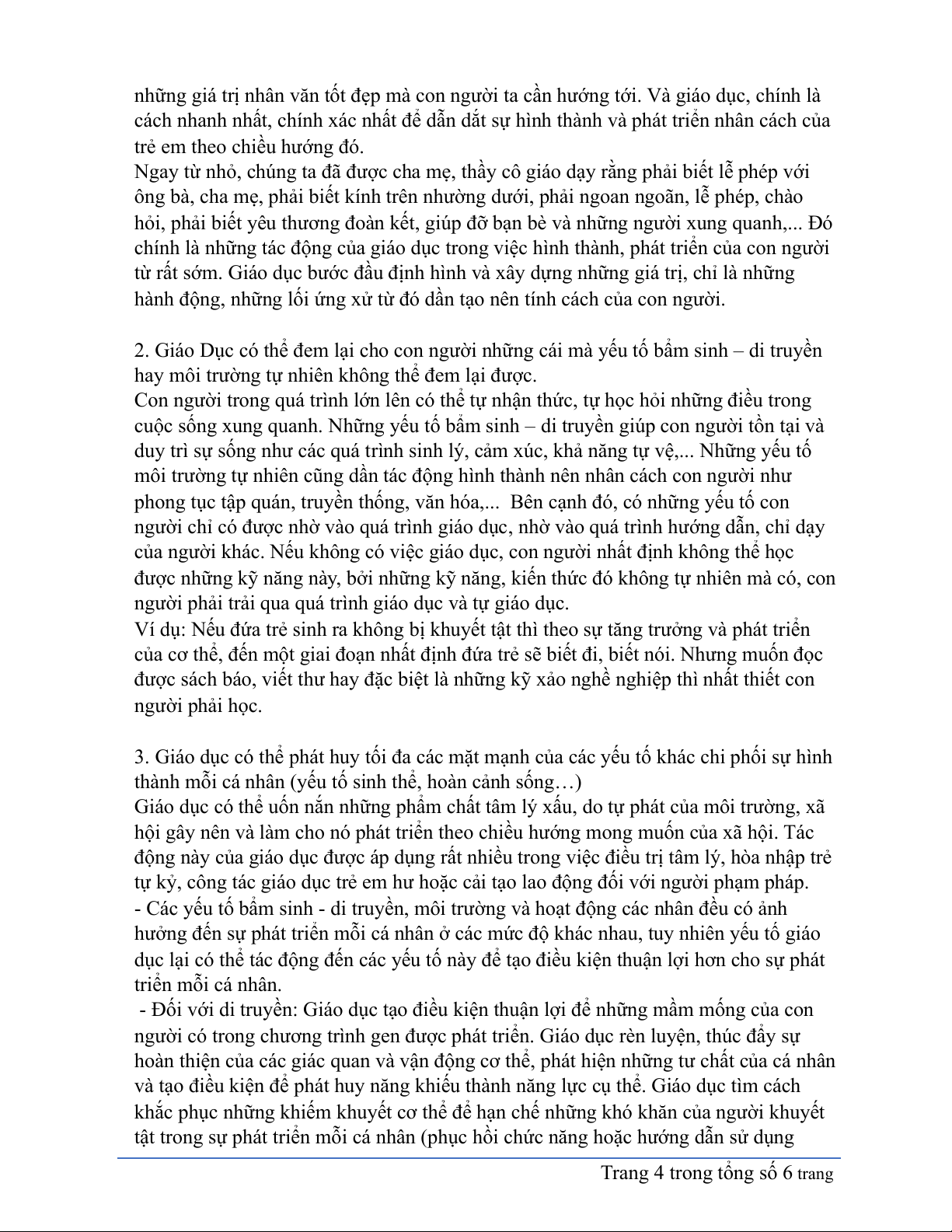 hưởng đến sự phát triển mỗi cá nhân ở các mức độ khác nhau, tuy nhiên yếu tố giáo