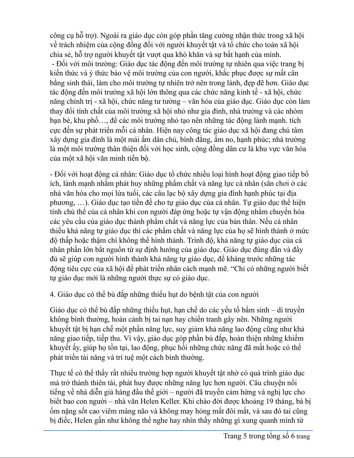 năng giao tiếp, tiếp thu. Vì vậy, giáo dục góp phần bù đắp, hoàn thiện những khiếm