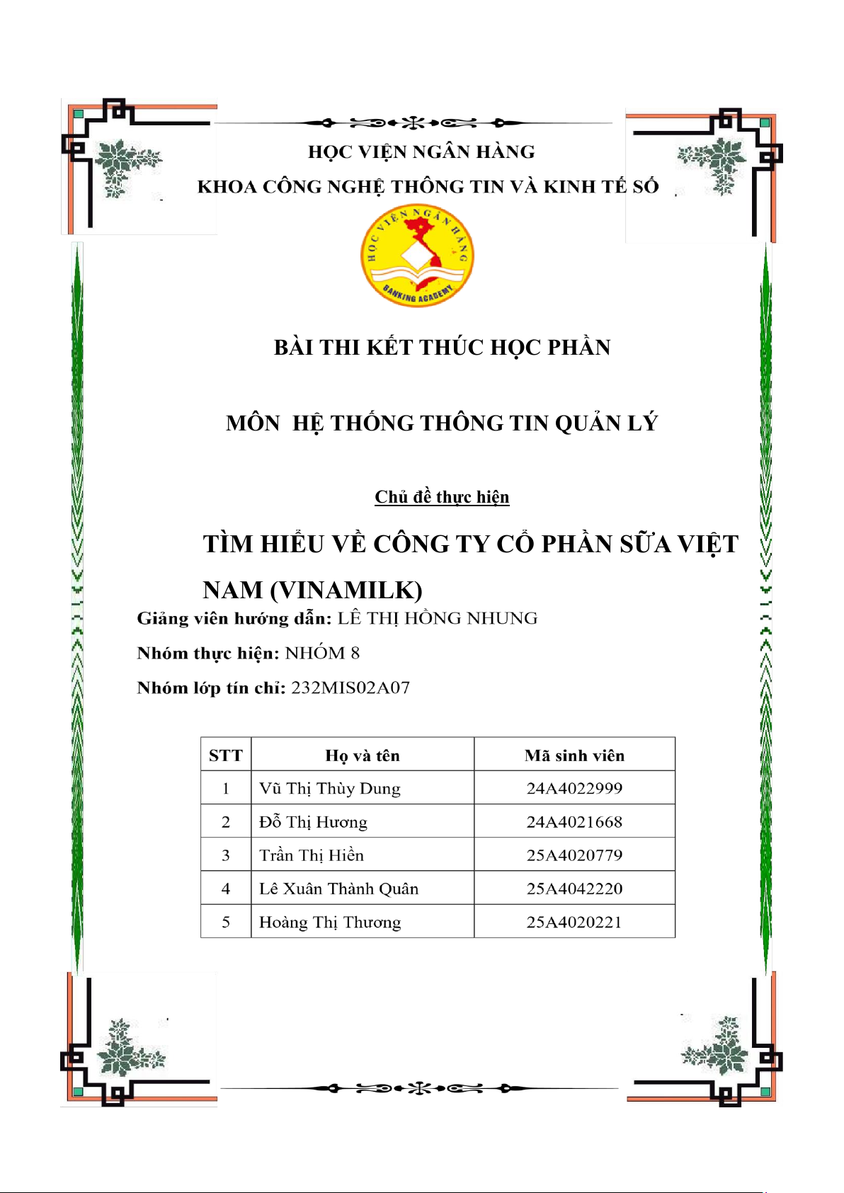MÔN HỆ THỐNG THÔNG TIN QUẢN LÝ