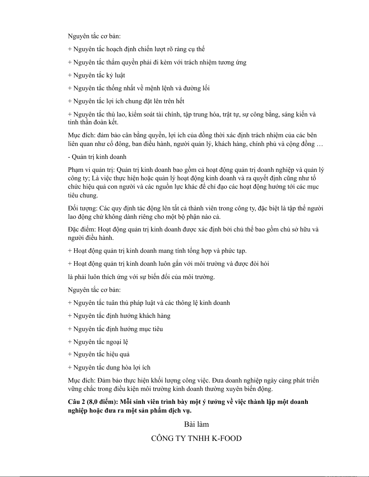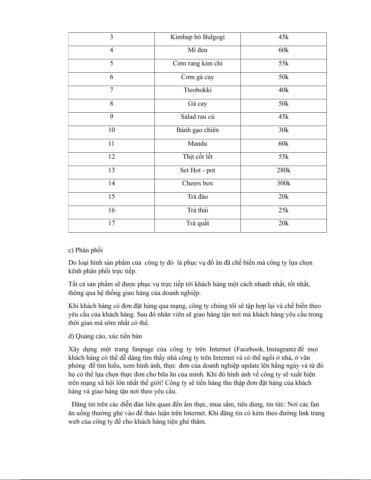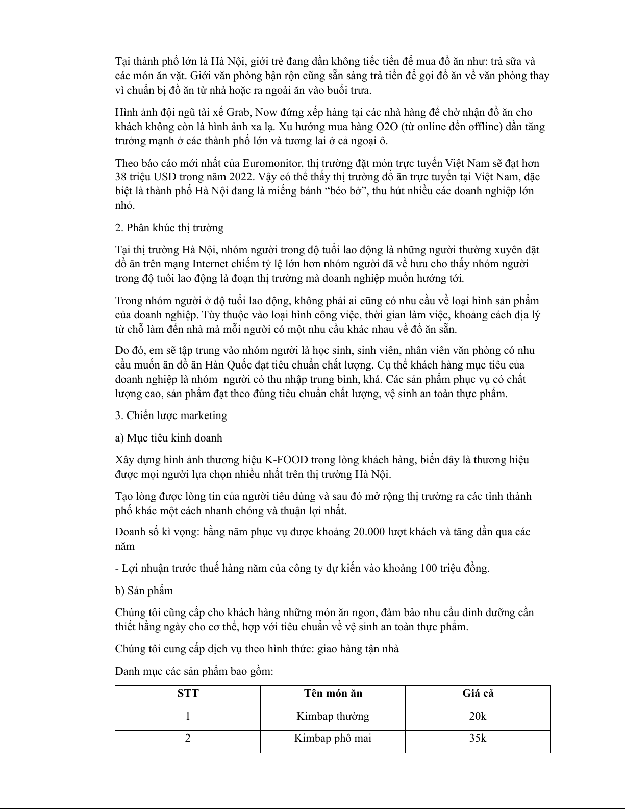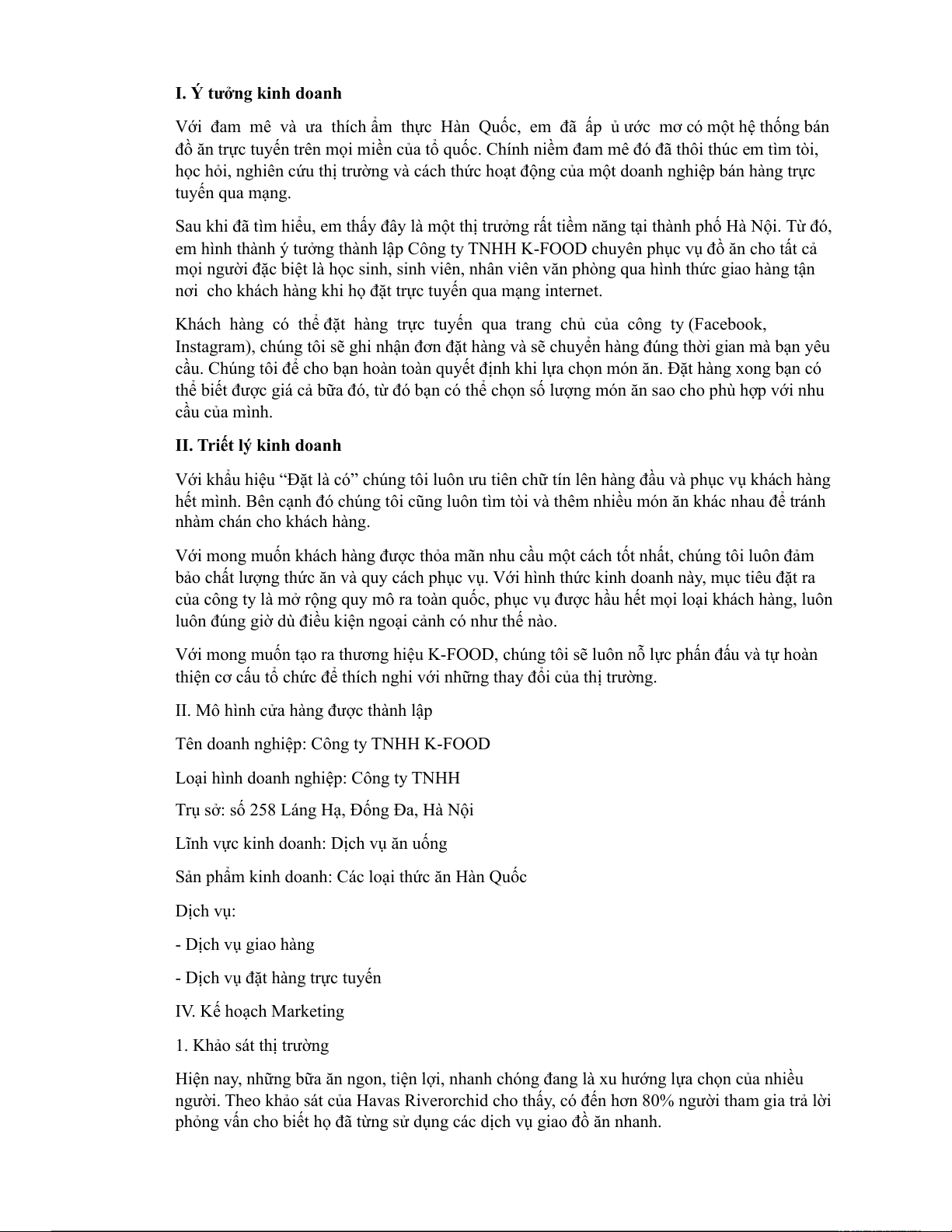 nghiệp hoặc đưa ra một sản phẩm dịch vụ. Bài làm CÔNG TY TNHH K-FOOD