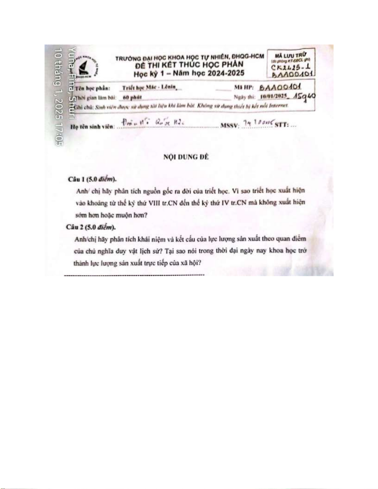 Bài Thi Kết Thúc môn Triết học Mác - Lênin | Trường Đại học Khoa học Tự nhiên, Đại học Quốc gia Thành phố Hồ Chí Minh