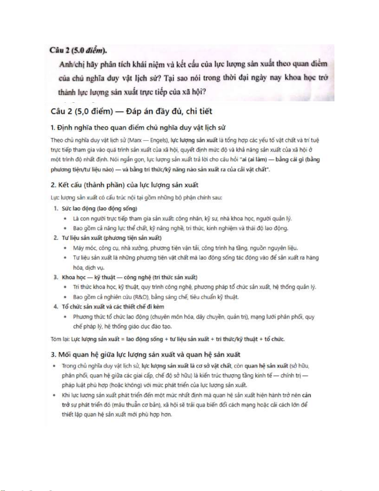 Chủ đề: “bằng lý luận của chủ nghĩa duy vật lịch Sử, anh/chị hãy làm sáng tỏ quan điểm rằng Người lao động là yếu tố hàng đầu của lực lượng Sản xuất môn Triết học Mác - Lênin | Trường Đại học Khoa học Tự nhiên, Đại học Quốc gia Thành phố Hồ Chí Minh