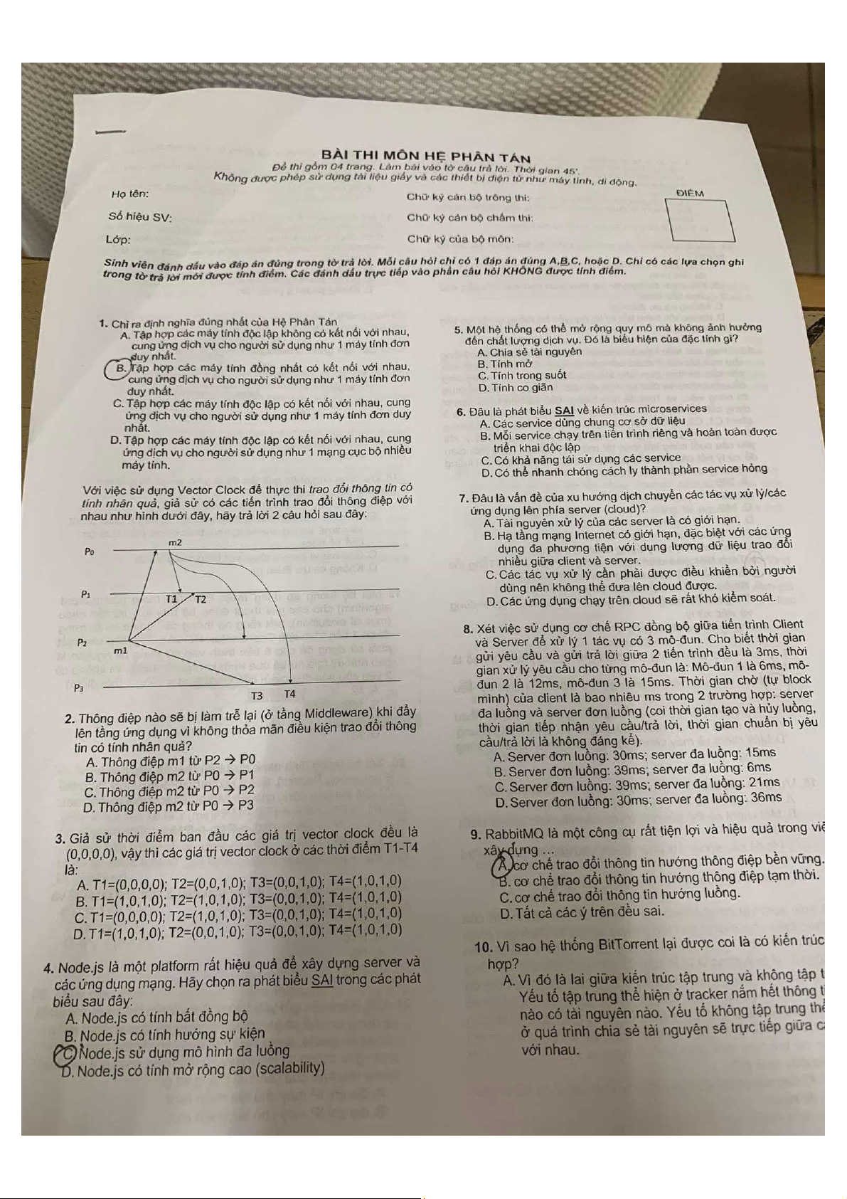 Bài Thi Môn Hệ thống phân tán và ứng dụng | Đại học Bách Khoa Hà Nội