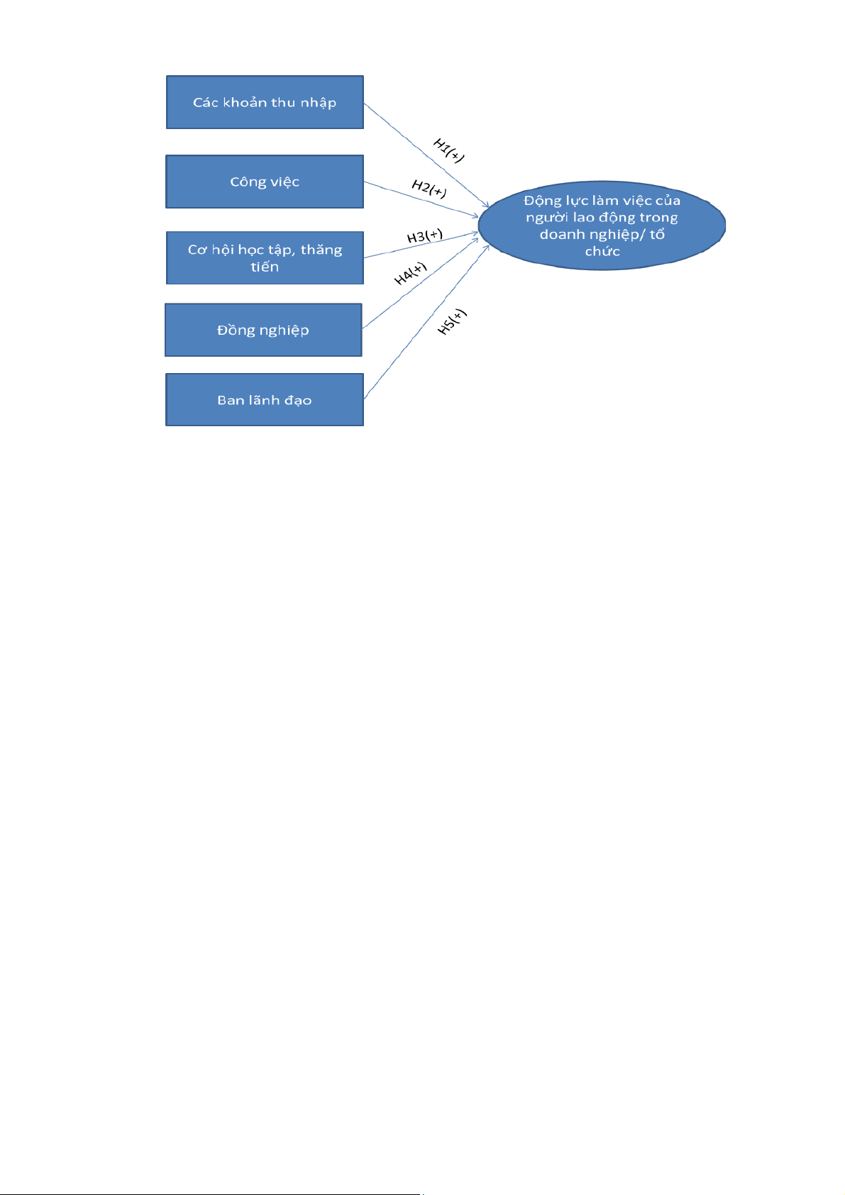 Hình 1: Mô hình nghiên cứu các nhân tố ảnh hưởng đến động lực làm việc của người lao động