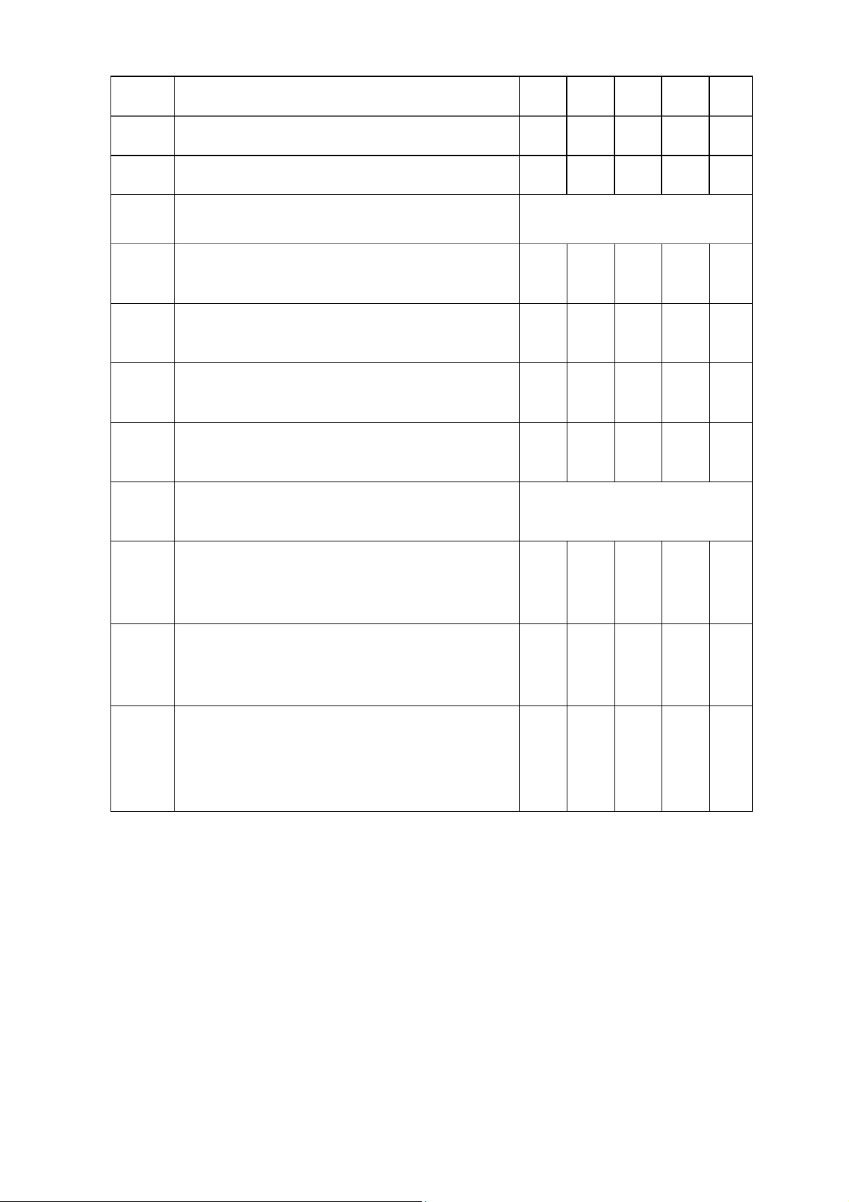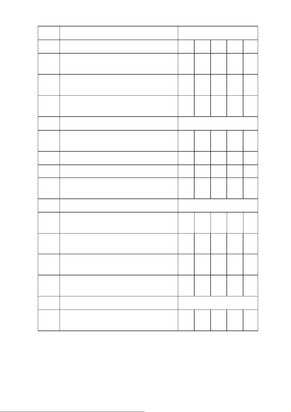 1 – Hoàn toàn không đồng ý 2 – Không đồng ý 3 – Không ý kiến 4 – Đồng ý 5 – Hoàn toàn đồng ý STT Yếu tố tác động Mức độ đồng ý 1 2 3 4 5