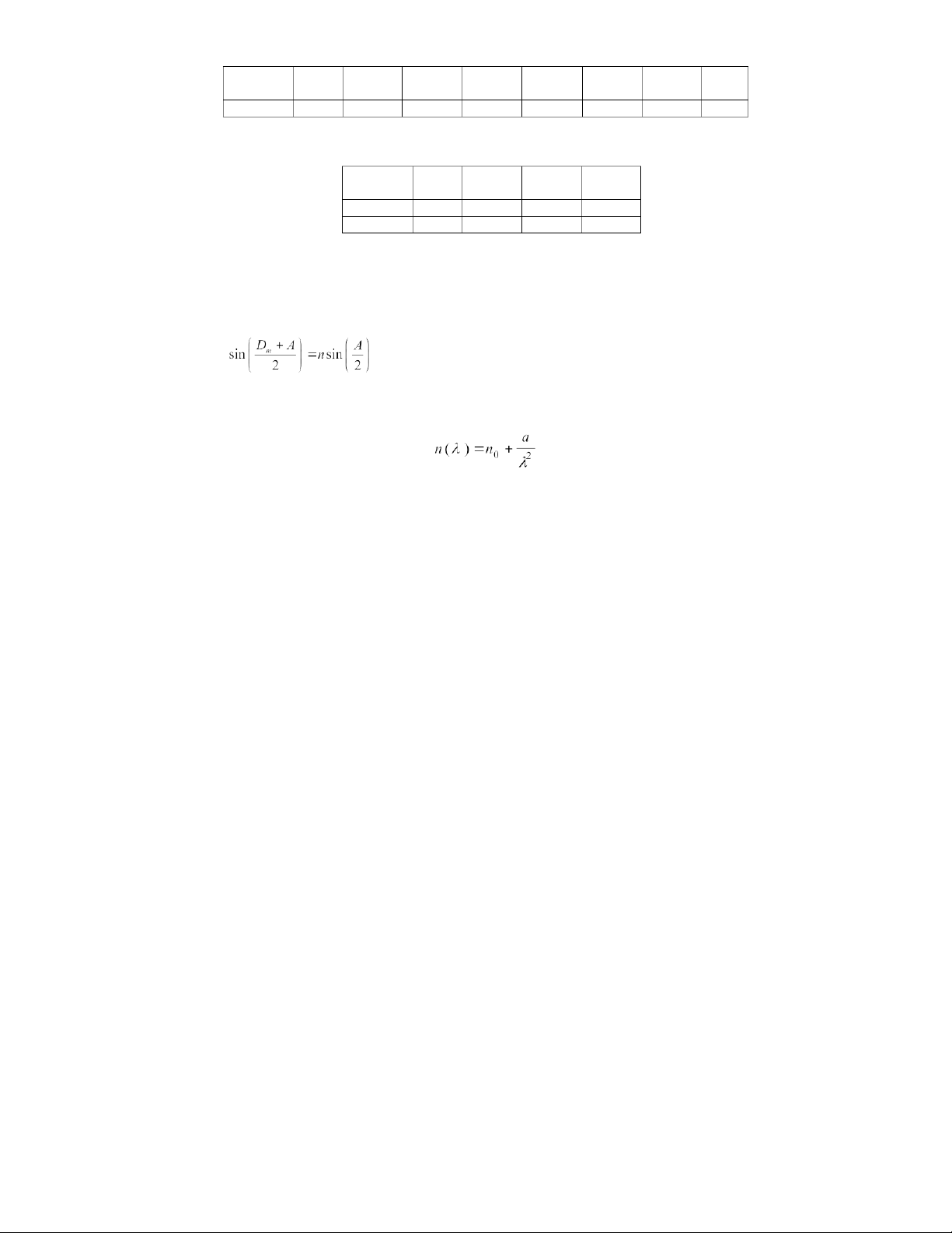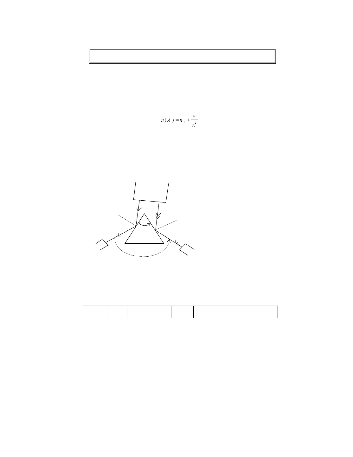 Đo chiết suất tương ững của 5 vạch mạnh nhất bằng phương pháp độ lệch tối thiểu.