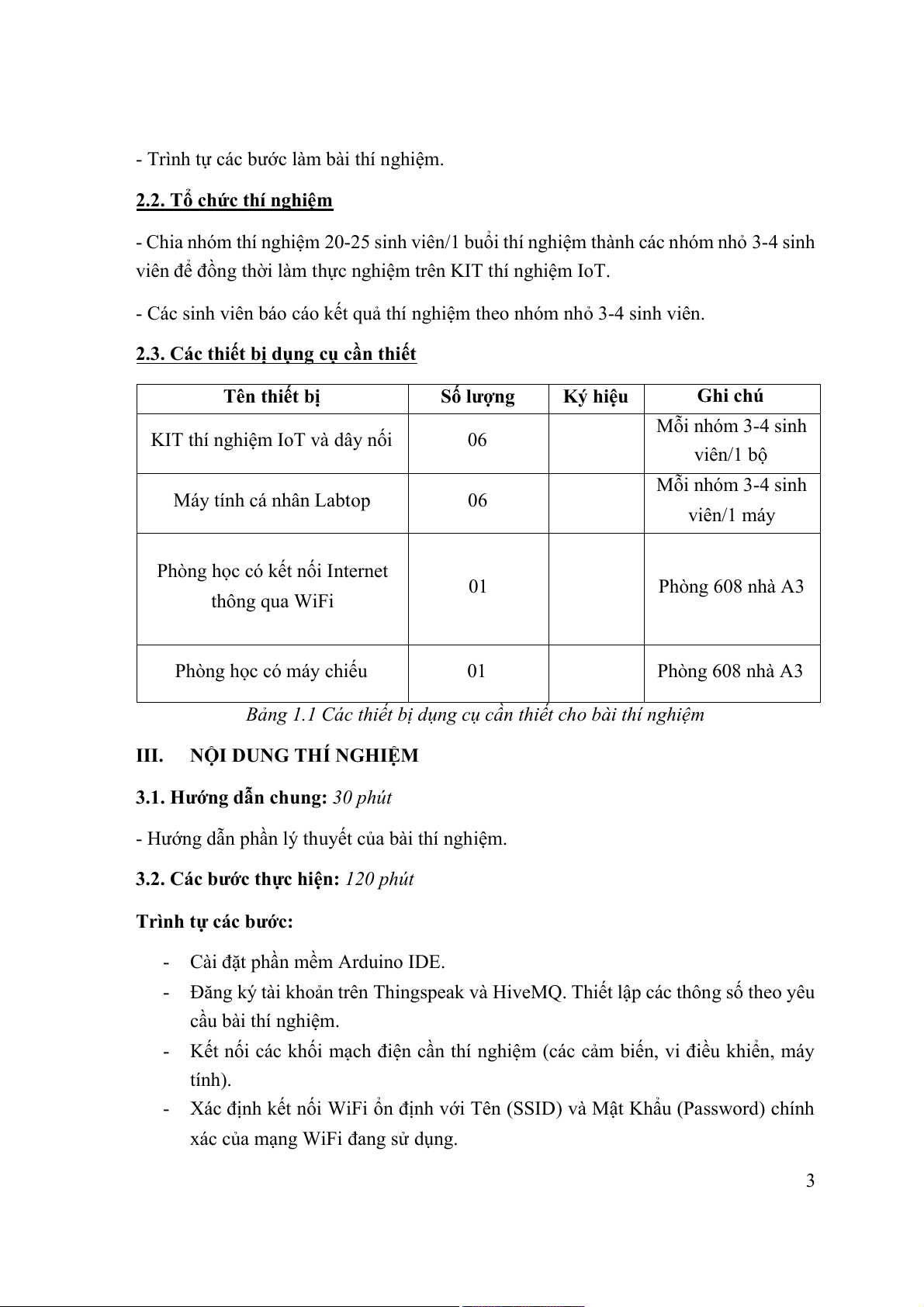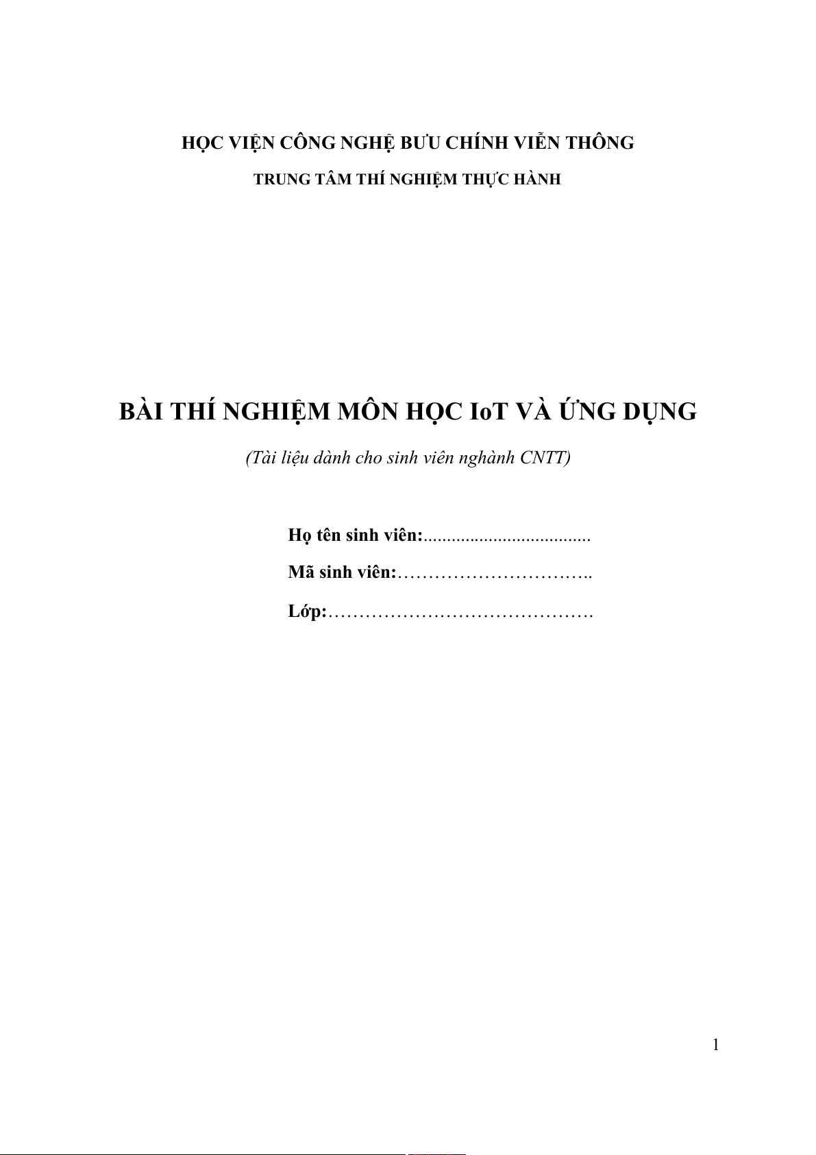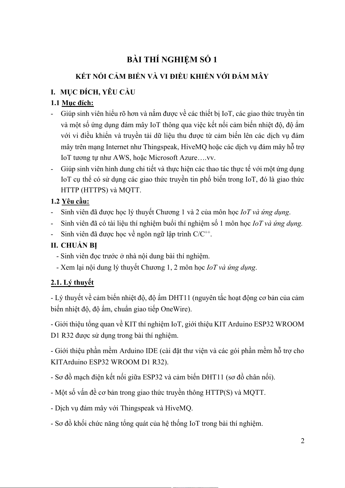 - Sinh viên đã có tài liệu thí nghiệm buổi thí nghiệm số 1 môn học IoT và ứng dụng.