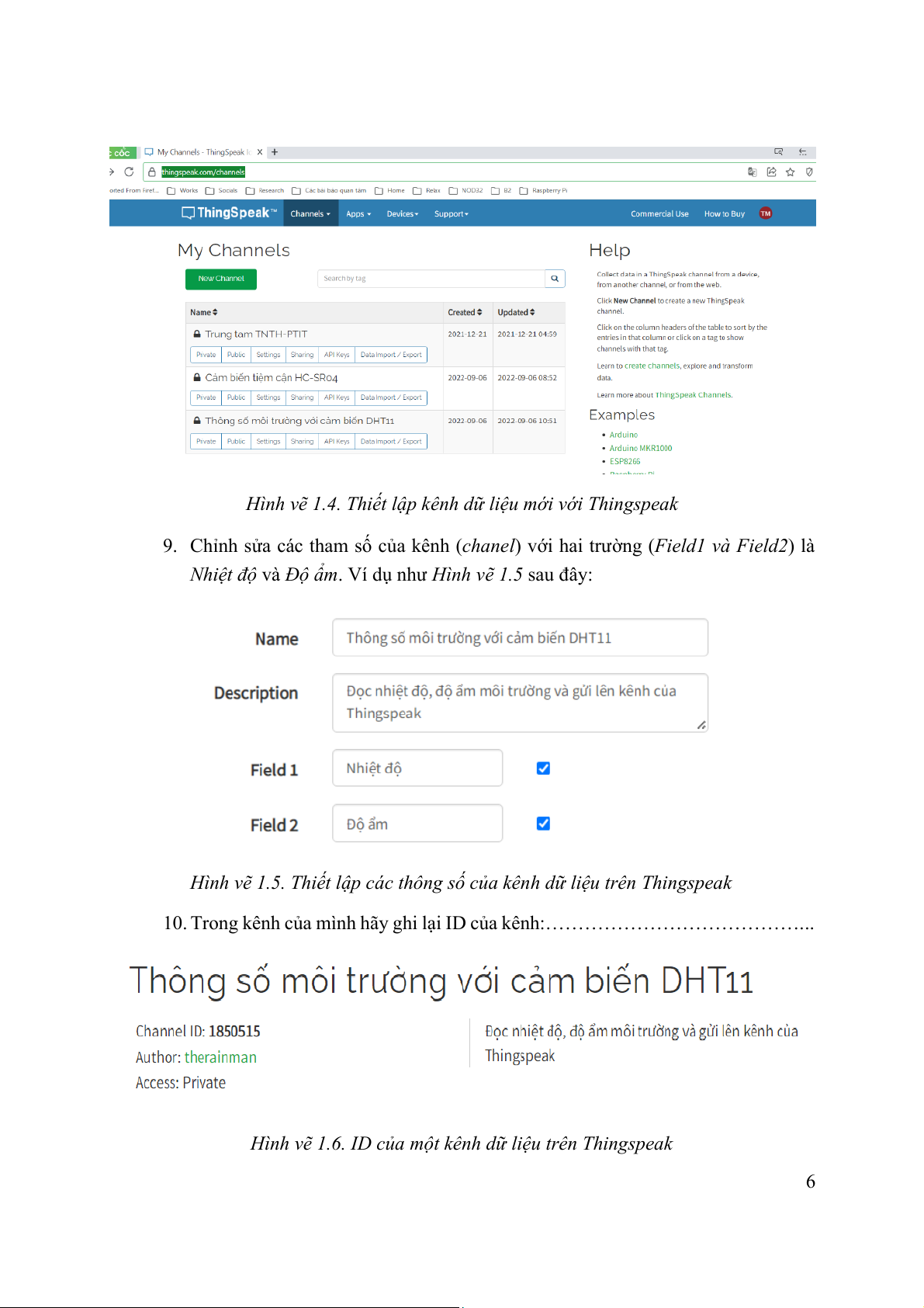 riêng mình và đặt tên kênh (Ví dụ là: Thông số môi trường với cảm biến DHT11). 5