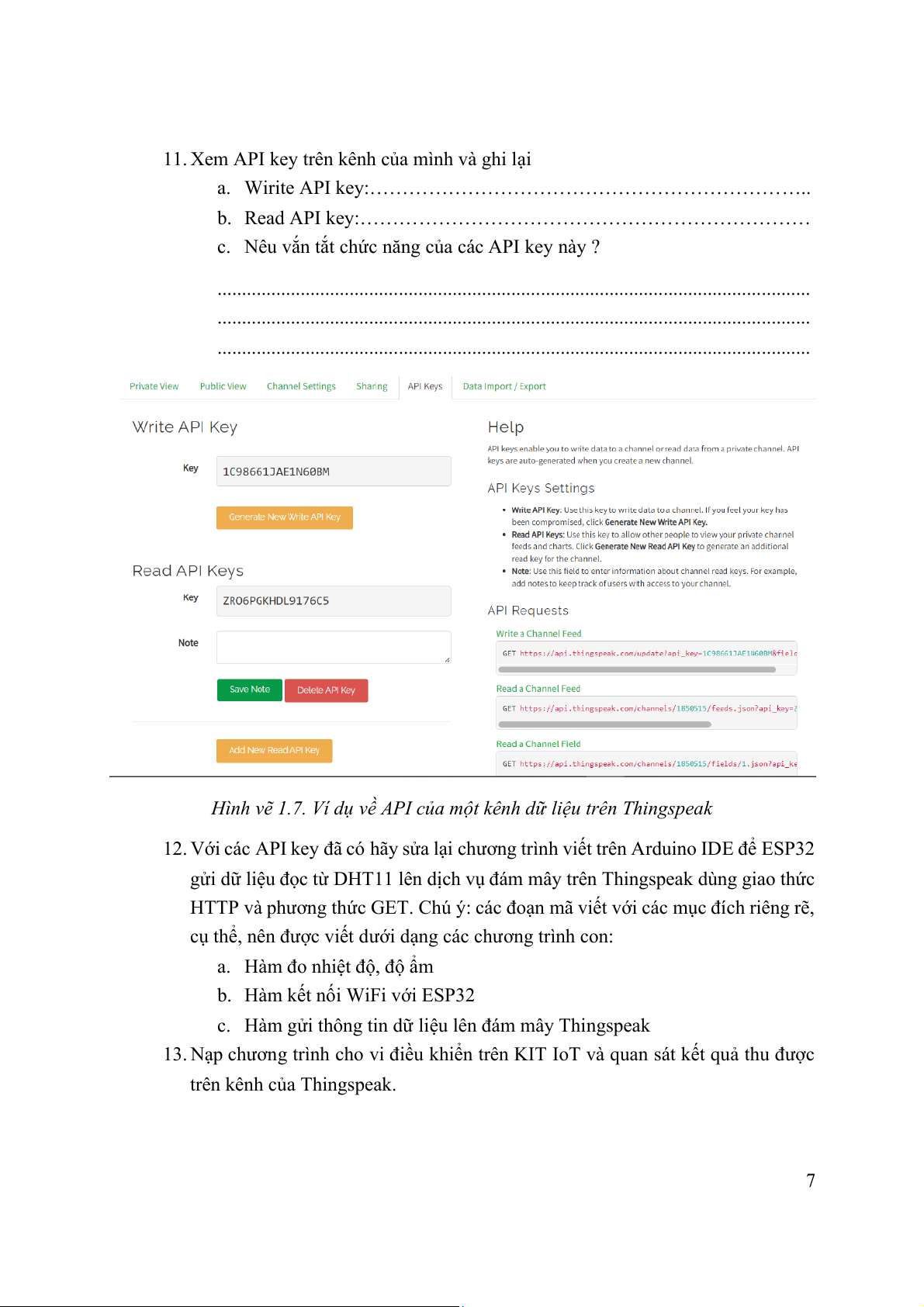 Hình vẽ 1.7. Ví dụ về API của một kênh dữ liệu trên Thingspeak
