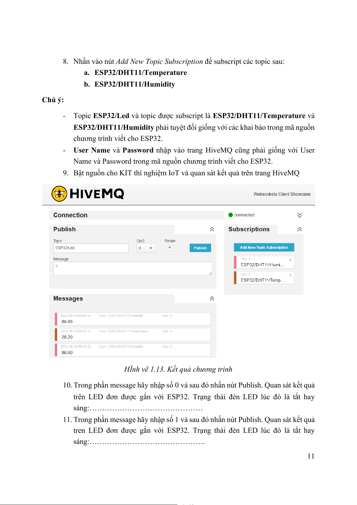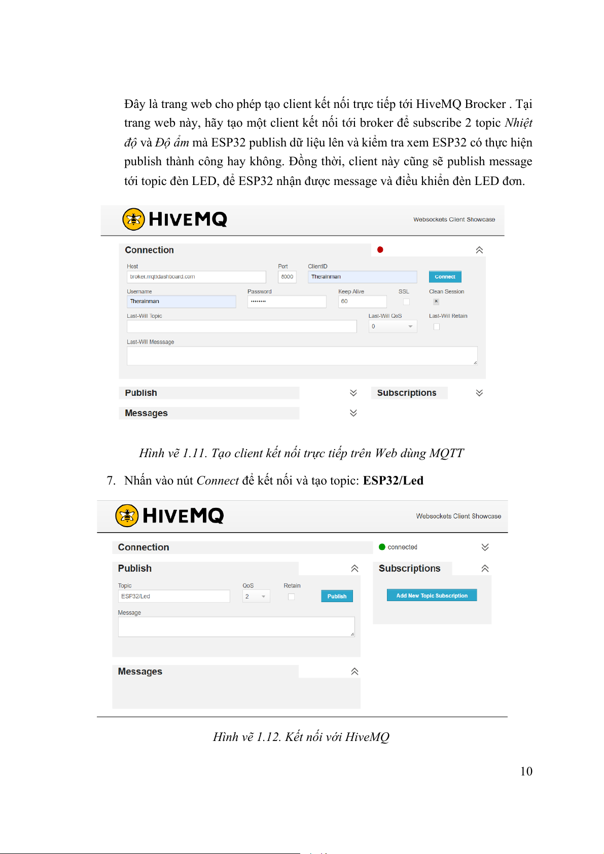 Hình vẽ 1.12. Kết nối với HiveMQ 10