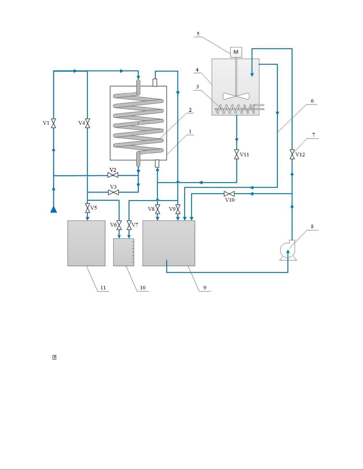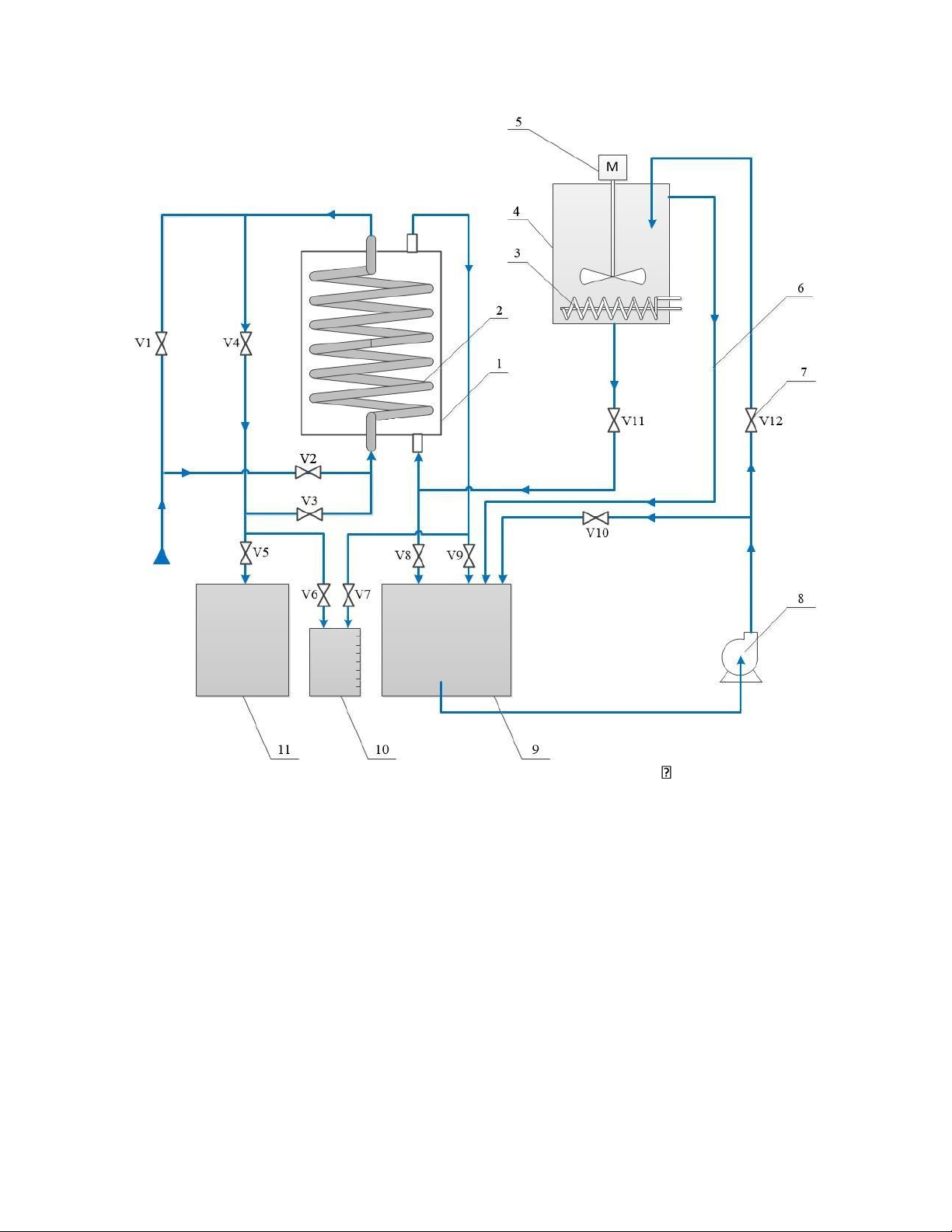 Quy trình thí nghiệm 2 - Ống xoắn ruột gà 7 – Van 3 – Thanh Nhiệt 8 – Bơm 4 – Bình gia nhiệt