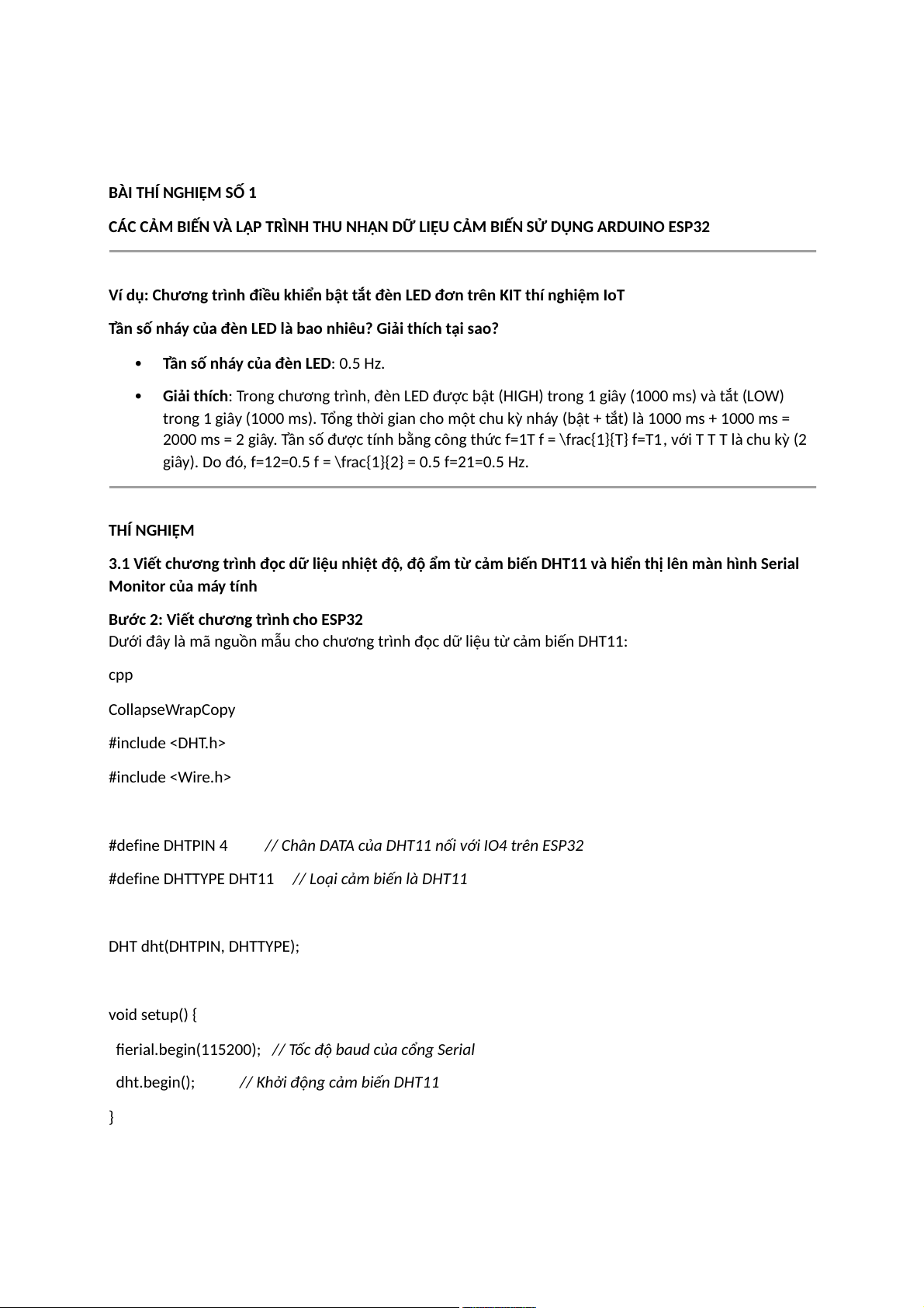 3.1 Viết chương trình đọc dữ liệu nhiệt độ, độ ẩm từ cảm biến DHT11 và hiển thị lên màn hình Serial Monitor của máy tính
