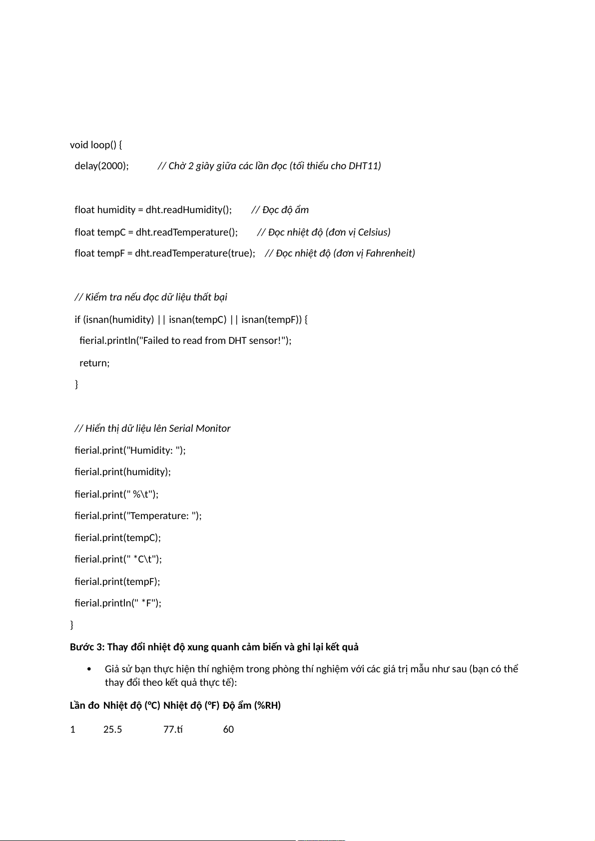 Lần đo Nhiệt độ (°C) Nhiệt độ (°F) Độ ẩm (%RH) 1 25.5 77.9 60