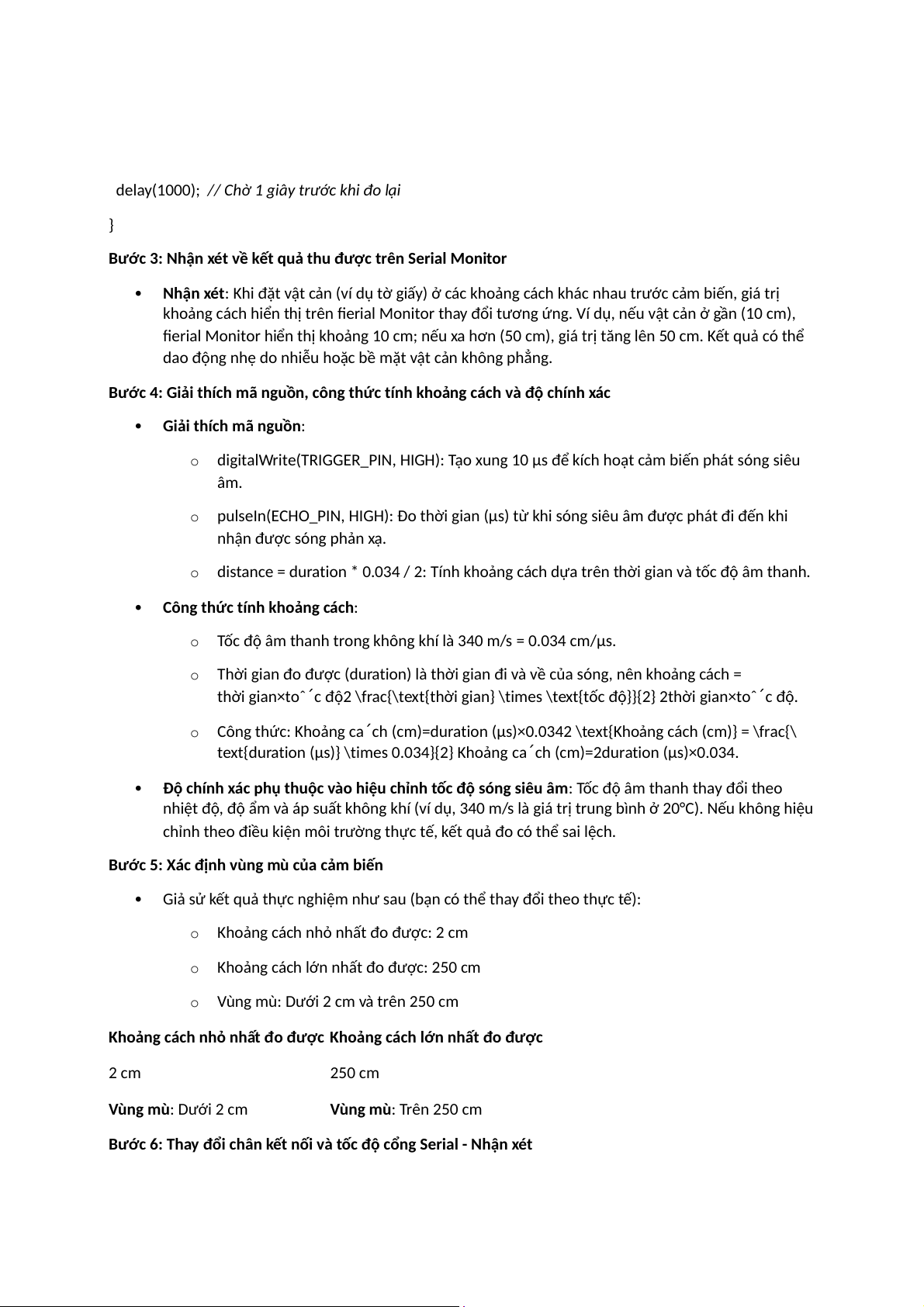 text{duration (µs)} \times 0.034}{2} Khoảng ca ch