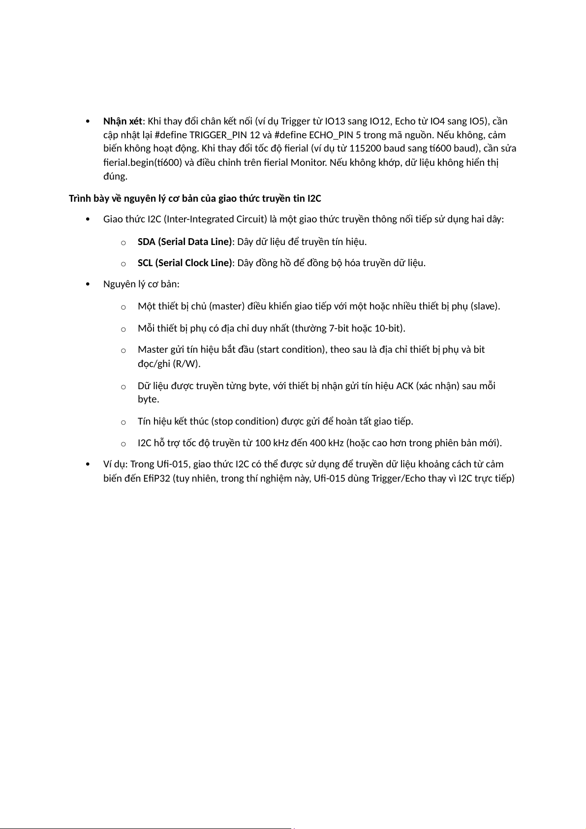 Ví dụ: Trong US-015, giao thức I2C có thể được sử dụng để truyền dữ liệu khoảng cách từ cảm