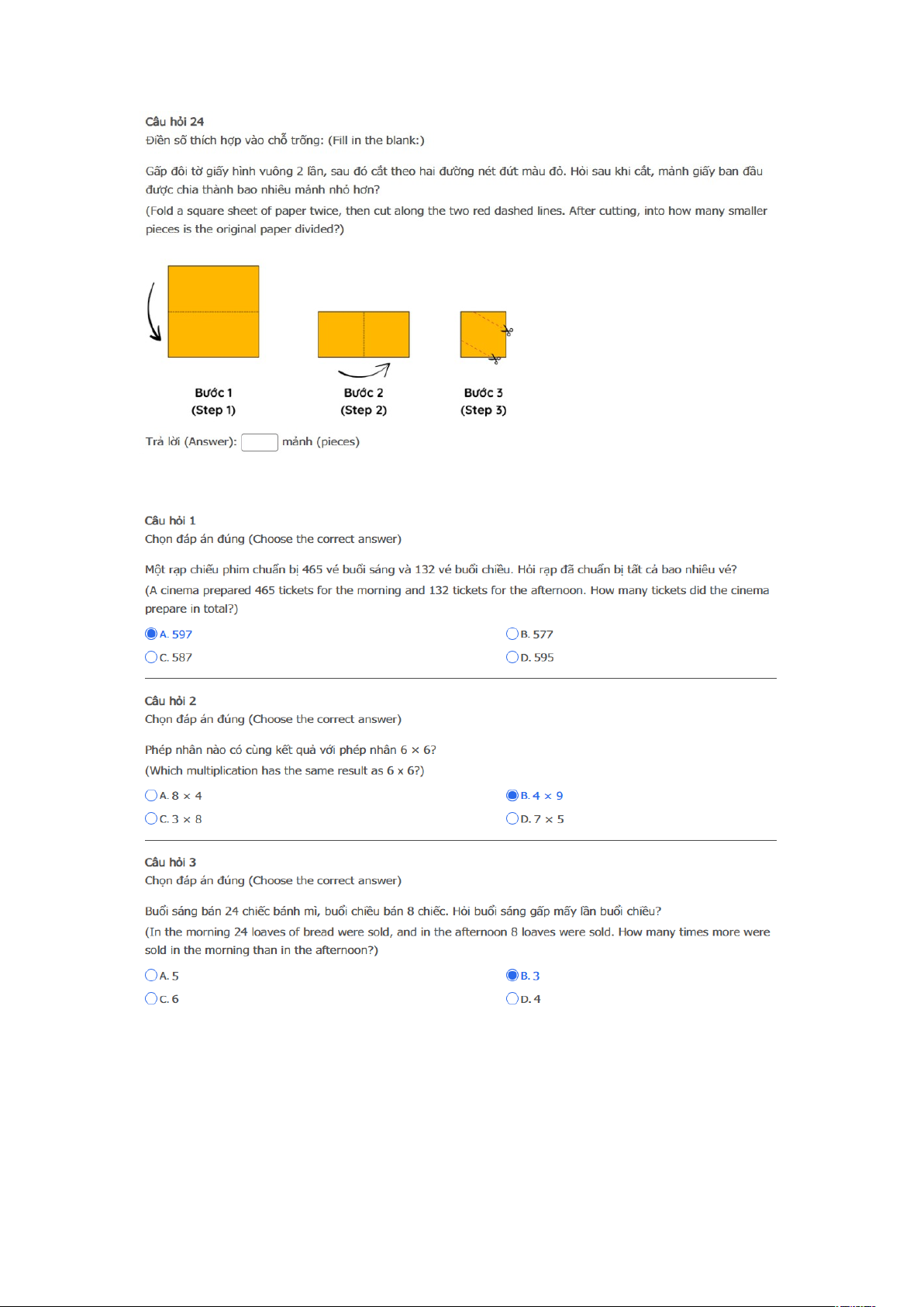 Bài thi số 1 - Khám phá 1 ( có đáp án ) - Sân chơi Toán học Việt Nam Khối 3 Năm học 2025 - 2026