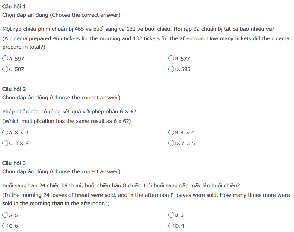SÂN CHƠI TOÁN HỌC VIỆT NAM KHỐI 3 NĂM HỌC 2025 - 2026