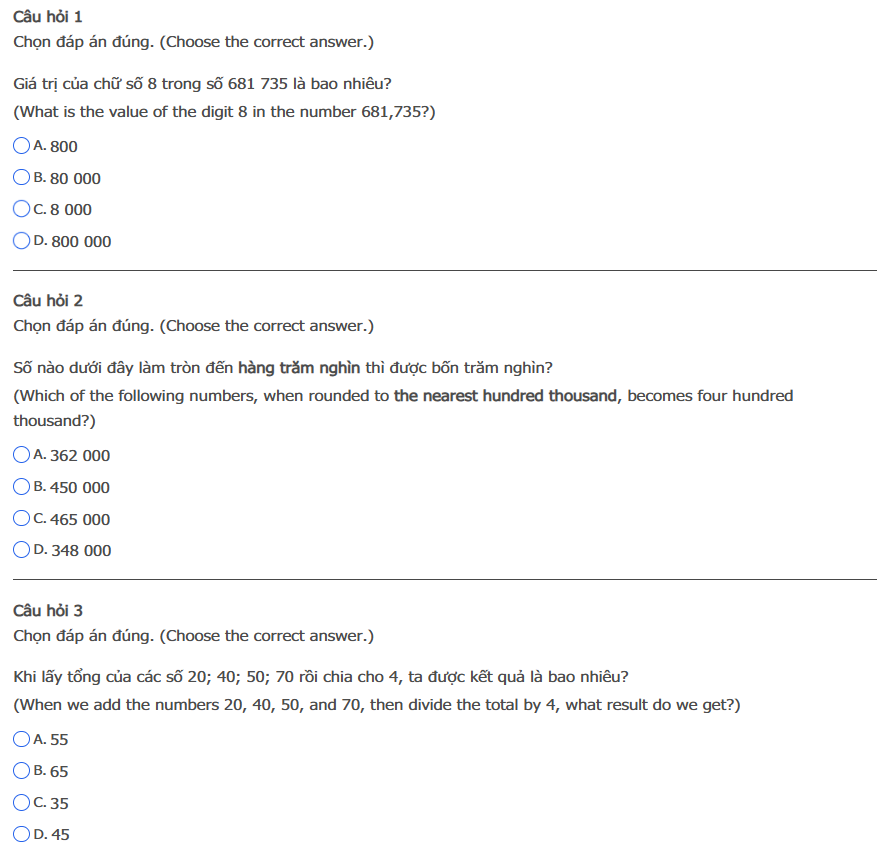SÂN CHƠI TOÁN HỌC VIỆT NAM KHỐI 4 NĂM HỌC 2025 - 2026