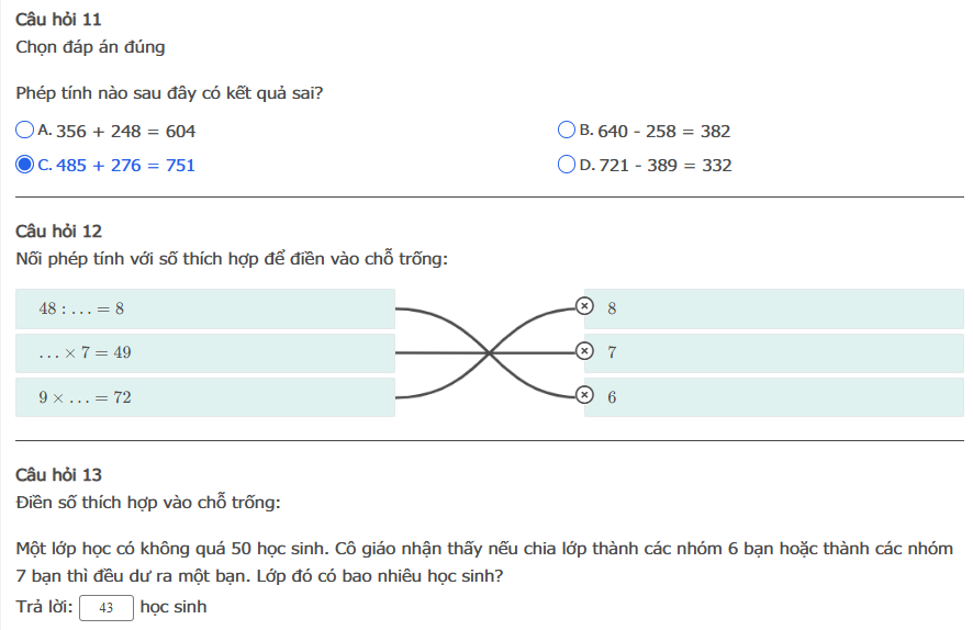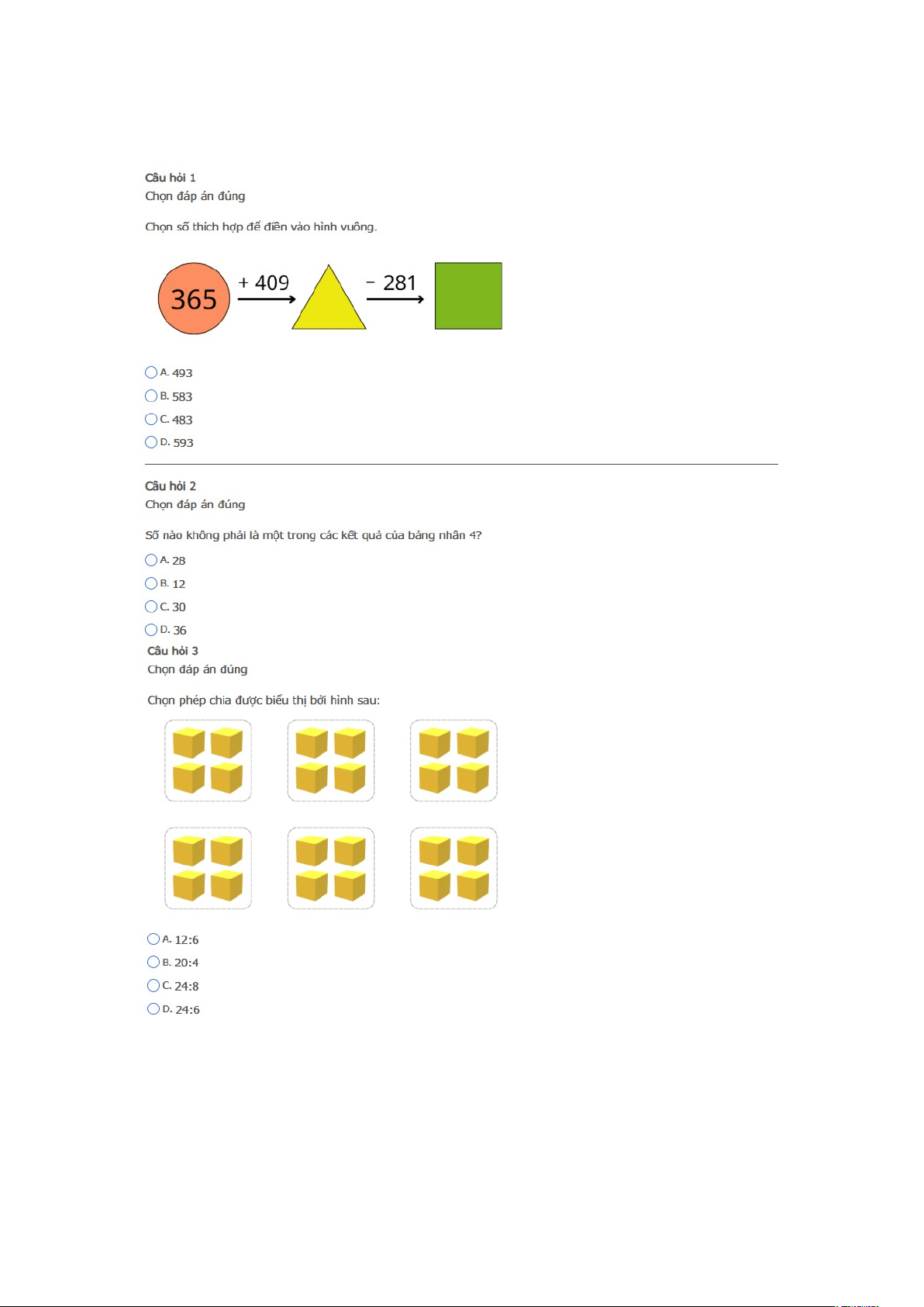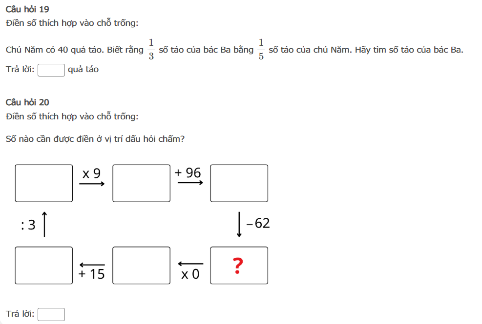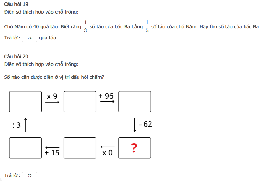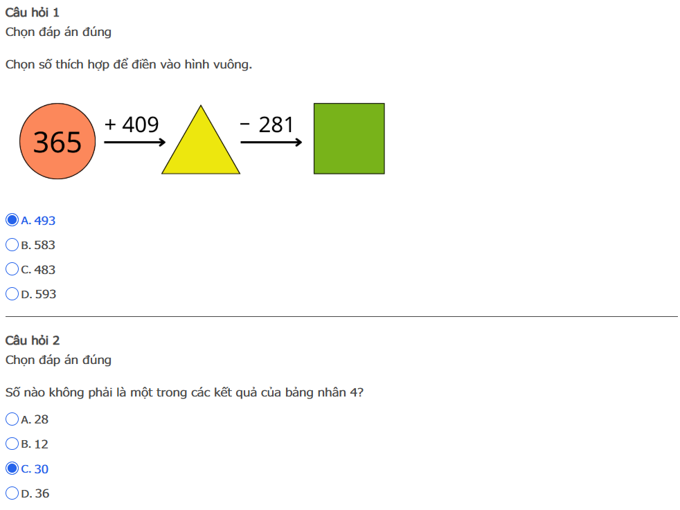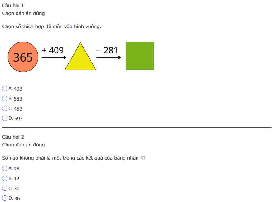Bài thi: Khởi động - Bài thi thử online ( có đáp án ) - Sân chơi Toán học Việt Nam Khối 3 Năm học 2025 - 2026