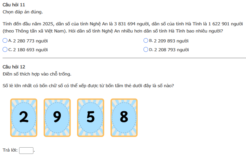 Bài thi số 3 - Khám phá 3 (có đáp án) - Sân chơi Toán Học Việt Nam Khối 4 Năm học 2025 - 2026
