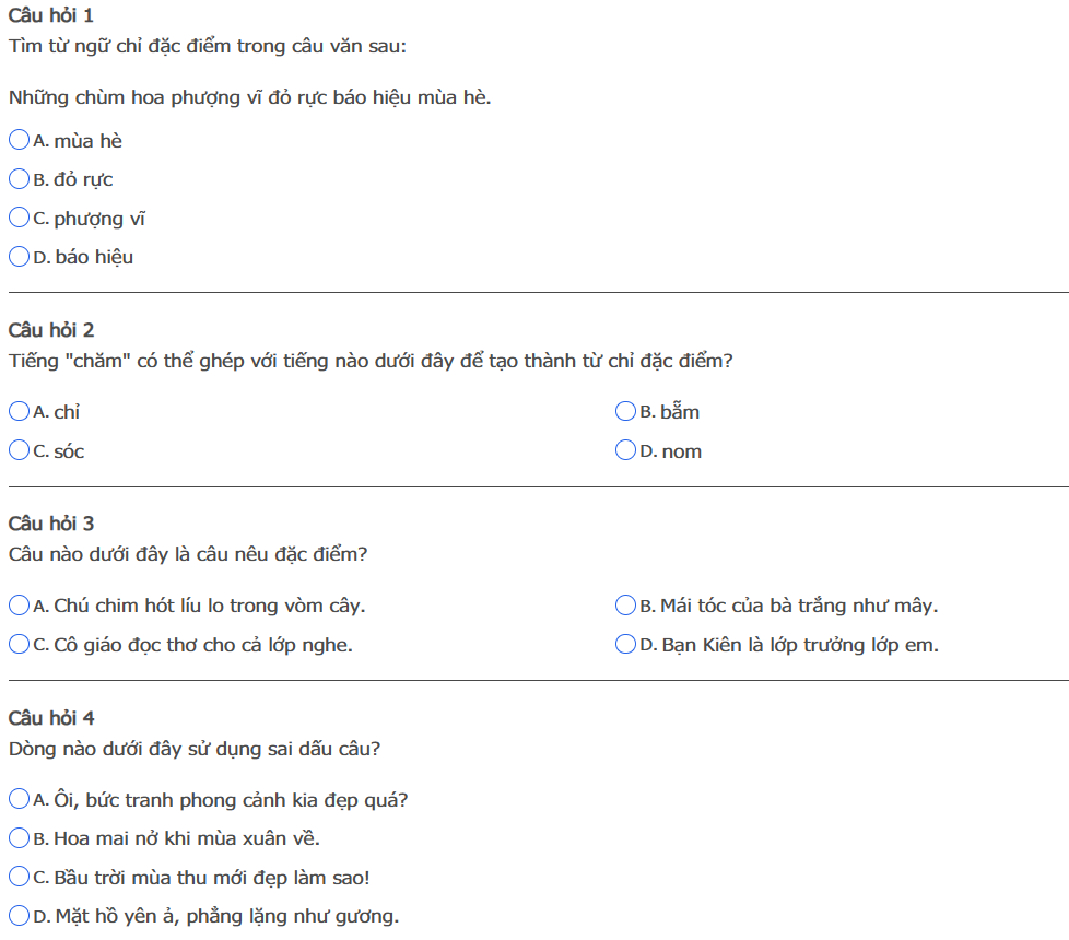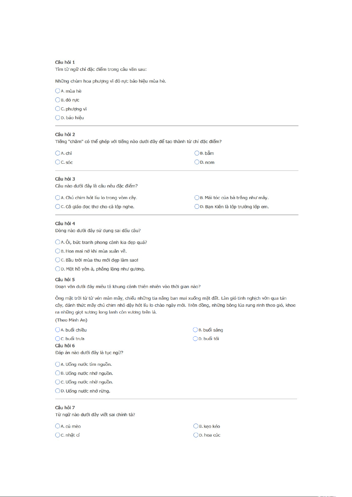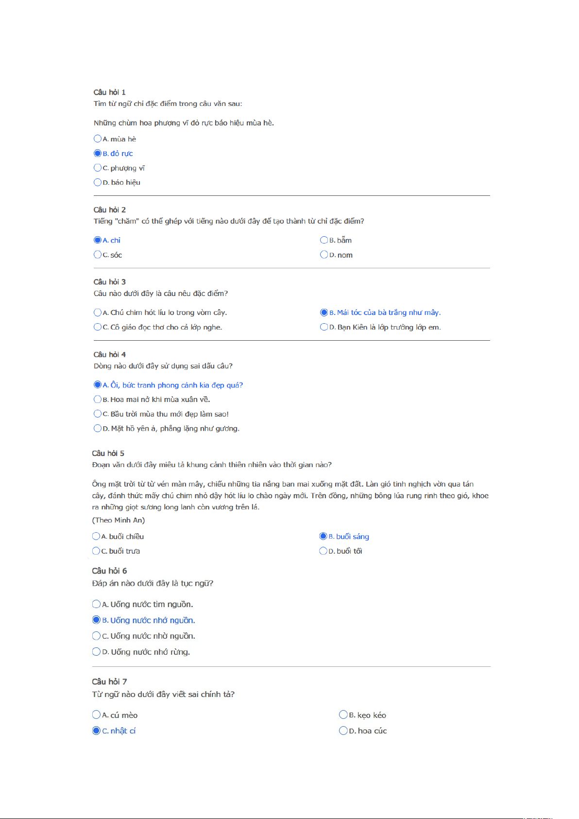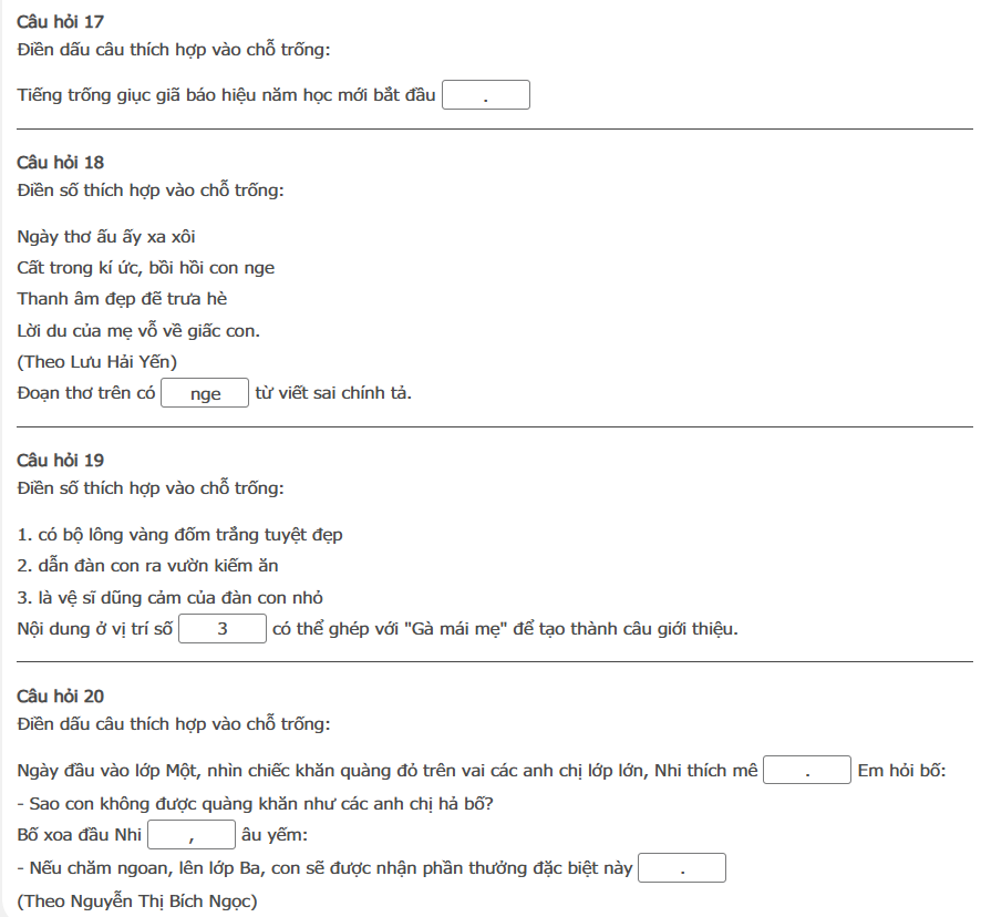 Bài thi: Vòng 1 ( có đáp án ) - Sân chơi Trạng Nguyên Tiếng Việt Khối 3 Năm học 2025 - 2026