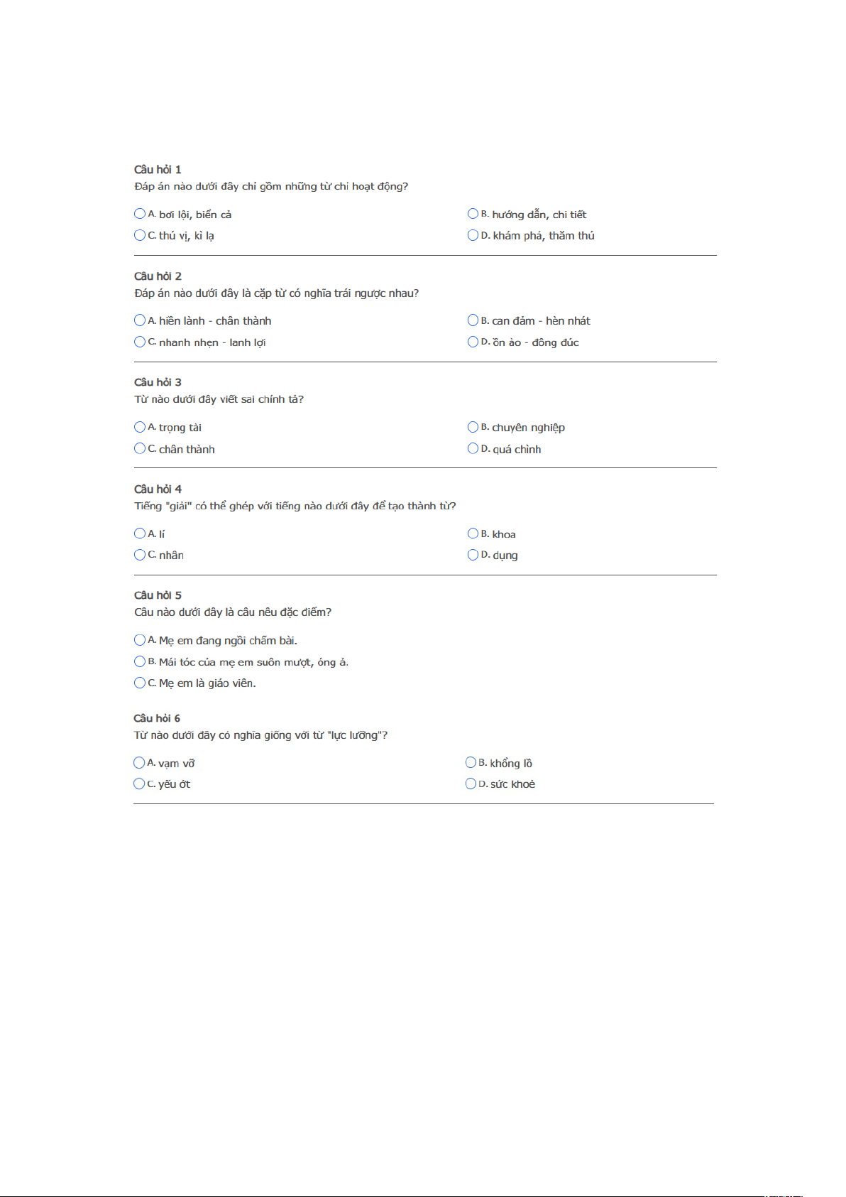 Bài thi: Vòng 1 (có đáp án) - Sân chơi Trạng Nguyên Tiếng Việt Khối 4 Năm học 2025 - 2026