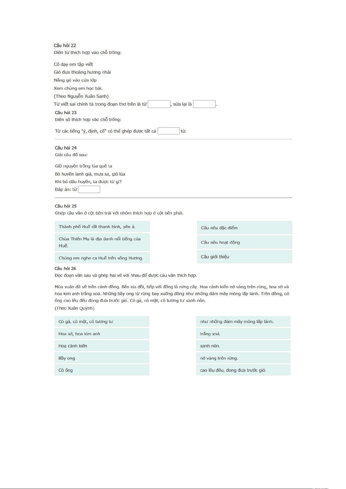 Bài thi: Vòng 2 (có đáp án) - Sân chơi Trạng Nguyên Tiếng Việt Khối 4 Năm học 2025 - 2026